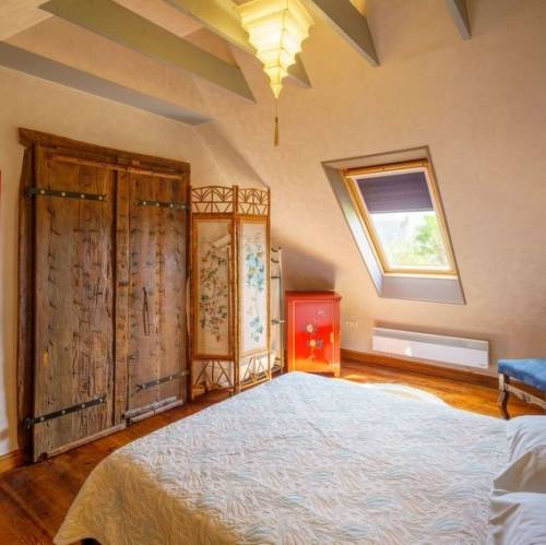 Kerlouan, FranciaCasa unifamiliar "Ker Simor Ty Mer", bonita. En el aldea Saint-Egarec, a 3 km del centro de Kerlouan, a 4.5 km del centro de Guissény, a 13 km del centro de Lesneven, a 200 m del mar, a 200 m de la playa. Privado: terreno 400 m2, jardín, cuidado con plantas. Ducha exterior. Trastero a disposición. Aparcamiento en el mismo terreno. Tienda 3 km, supermercado 3 km, restaurante 2.5 km, panadería 3 km, playa de arena "Plage Saint-Egarec" 200 m, piscina cubierta 15 km, piscina termal "Thalasso Roscoff" 39 km. Campo de golf (18 hoyos) 36 km, escuela de surf 1.4 km, escuela de vela 8.5 km. Atracciones en los alrededores: Meneham 2.5 km, Reserve ornithologique Keremma 10 km, Chateau de Kerjean 26 km, Oceanopolis Brest 36 km, Morlaix 57 km. "Ker Simor Ty Mer (KER235)", casa 5 estancias 120 m2 en 2 plantas. Luminoso, con mobiliario confortable y de buen gusto: salón-comedor con chiminea nórdica y mesa de comedor. Salida a la terraza. 1 dorm. con 1 cama de matrimonio (160 cm), ducha. Cocina abierta (horno, lavavajillas, 5 fuegos, tostadora, hervidor de agua eléctrico, microondas, congelador, cafetera eléctrica). WC separado. Planta superior: salón abuhardillado con TV, equipo de música, DVD y estufa eléctrica. 1 dorm., abuhardillado con puerta corredera con 1 cama de matrimonio (160 cm), estufa eléctrica. 1 dorm., abuhardillado con 2 camas y estufa eléctrica. Baño/WC. Calefacción eléctrica. Terraza. Muebles de terraza, barbacoa (portátil), tumbonas (4). El alojamiento dispone de: lavadora, secadora, plancha, trona, cuna. Internet (Wifi, gratis). A tener en cuenta: casa para no fumadores. Detector de humo.