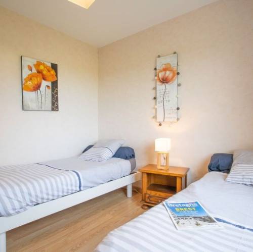 Kerlouan, FranciaCasa unifamiliar "L'Echo des Vagues". En el barrio de Saint-Egarec, a 3 km del centro de Kerlouan, a 4 km del centro de Guisseny, a 11 km del centro de Lesneven, a 100 m del mar, a 100 m de la playa, en una calle sin salida. Privado: terreno 700 m2 con césped y plantas, aparcamiento en el mismo terreno, garaje individual. Tienda 3 km, supermercado 3 km, restaurante 3 km, panadería 3 km, playa de arena "Plage de Roc'h ar Cong" 100 m, piscina cubierta 12 km, piscina termal "Thalasso Roscoff" 40 km. Campo de golf (18 hoyos) 38 km, escuela de surf 1.3 km, escuela de vela 8.5 km, rutas de senderismo desde la casa 100 m. Atracciones en los alrededores: Meneham 2.5 km, Reserve ornithologique Dunes de Keremma 10 km, Château de Kerjean 30 km, Oceanopolis Brest 35 km, Roscoff et Jardin exotique 38 km, Morlaix 54 km. "L'Echo des Vagues (KER217)", casa 4 estancias 80 m2 en 2 plantas. Con mobiliario bonito y de buen gusto: salón-comedor con invernadero con mesa de comedor, TV satélite, radio y CD. Salida a la terraza. Cocina abierta (horno, lavavajillas, 4 placas de vitrocerámica, tostadora, hervidor de agua eléctrico, microondas, congelador, cafetera eléctrica). Ducha, WC separado. Planta superior: 2 dorm., abuhardillados, cada habitación con 1 cama de matrimonio (140 cm, 190 cm de longitud). 1 dorm., abuhardillado con 2 camas (90 cm, 190 cm de longitud). Ducha, WC separado. Calefacción eléctrica. Suelo de parquet. 2 terrazas. Muebles de terraza, barbacoa (portátil), tumbonas (4). El alojamiento dispone de: lavadora, plancha, trona, cuna. Internet (Wifi, gratis). A tener en cuenta: casa para no fumadores. Permitido máximo 1 mascota / perro. Detector de humo.