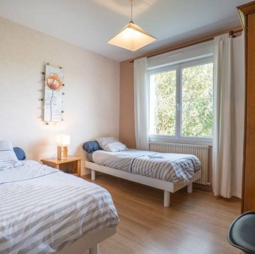 Trégunc, FranciaCasa unifamiliar "Ty Coat Pin", bonita. En el barrio de Coat Pin, a 1.5 km del centro de Trégunc, a 9 km del centro de Concarneau, en un barrio residencial, a 4 km del mar, a 4 km de la playa. Privado: terreno 800 m2 (vallada), césped y plantas. Trastero a disposición. Aparcamiento (para 2 coches) en el mismo terreno. Tienda 1.5 km, supermercado 2 km, restaurante 1.5 km, panadería 1.5 km, playa de arena "Plage Kerdallé" 4 km. Puerto para yates 9 km, campo de golf (18 hoyos) 15 km, escuela de surf 5 km, escuela de vela 5 km. Atracciones en los alrededores: Ville Close, Concarneau par bac 7 km, Pointe de Trevignon 6.5 km, Chaumières de Kerascoet 10 km, Pont-Aven 10 km, Port Manec'h 12 km, Quimper 36 km. "Ty Coat Pin (TGC117)", casa 4 estancias 90 m2 en 2 plantas. Luminoso, con mobiliario bonito y agradable: salón-comedor con mesa de comedor, TV satélite y canales internacionales. Salida a la terraza. Cocina abierta (horno, lavavajillas, 3 Placas de inducción, tostadora, hervidor de agua eléctrico, microondas, congelador, cafetera eléctrica). WC separado. Planta superior: altillo abuhardillado. 1 dorm., abuhardillado con 1 cama de matrimonio (160 cm, 200 cm de longitud). 1 dorm., abuhardillado con 1 cama (140 cm, 190 cm de longitud). 1 dorm., abuhardillado con 1 cama de matrimonio (1 x 140 cm, 190 cm de longitud). Ducha, WC separado, doble lavabo. Calefacción eléctrica. Suelo de parquet. Terraza, orientación suroeste. Muebles de terraza, barbacoa (portátil), tumbonas (2). El alojamiento dispone de: lavadora, plancha, cuna. Internet (Wifi, gratis). A tener en cuenta: casa para no fumadores. Detector de humo. La disponibilidad de las camas es flexible. Aunque haya más camas disponibles que la ocupación máxima, esta no se puede exceder.