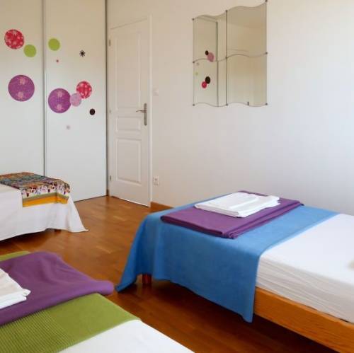Loctudy, FranciaCasa "d'artistes", adosada por un lado. A 6 km del centro de Loctudy, a 3 km del centro de Lesconil, a 9 km del centro de Pont l'Abbé, en un barrio residencial, a 70 m del mar. Comunitario: jardín. Privado: jardín pequeño con plantas, posibilidad de aparcamiento en la calle. Tienda 3 km, supermercado 5 km, restaurante 700 m, playa de arena "Plage des sables blancs" 70 m, piscina cubierta 9 km. Campo de golf 27 km, escuela de vela 3 km. Atracciones en los alrededores: Pointe de la Torche 16 km, port du Guilvinec 8 km, phare d'Eckmühl 16 km. "d'artistes", casa 5 estancias 270 m2 en 3 plantas. Con mobiliario bonito y antiguo: salón-comedor con chiminea nórdica, mesa de comedor, radio, CD, equipo de música y DVD. Salida a la terraza. Cocina abierta (horno, lavavajillas, 5 fuegos, tostadora, hervidor de agua eléctrico, congelador, cafetera eléctrica). WC separado. Planta superior: 1 dorm. con 1 cama (120 cm, 190 cm de longitud). 1 dorm. con 1 x 2 literas (90 cm, 190 cm de longitud). 1 dorm. con 1 cama de matrimonio (200 cm, 200 cm de longitud). Baño/WC. Planta superior 2: (escala) 1 dorm., abuhardillado altura de techo 120 - 125 cm con 1 posibilidad para dormir (140 cm, 190 cm de longitud). Ducha/WC. Calefacción gasóleo. Suelo de parquet, suelo de piedra natural. Terraza 50 m2. Muebles de terraza, barbacoa (portátil). El alojamiento dispone de: lavadora, secadora. Internet (Wifi, gratis). A tener en cuenta: casa para no fumadores. Detector de humo.