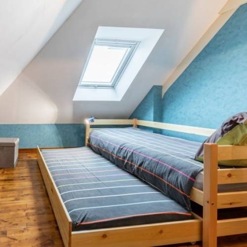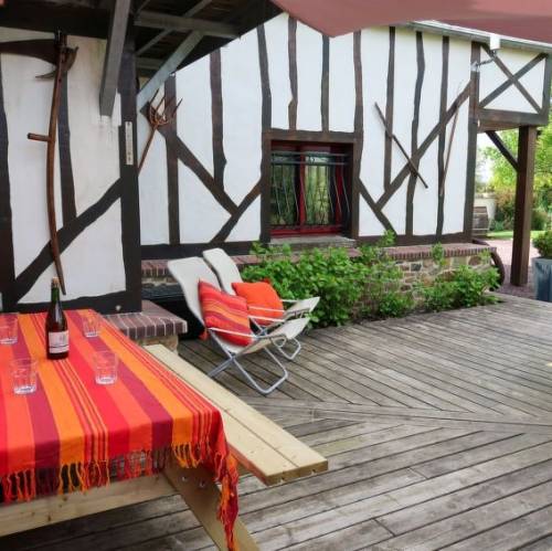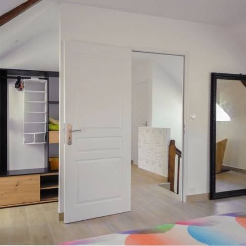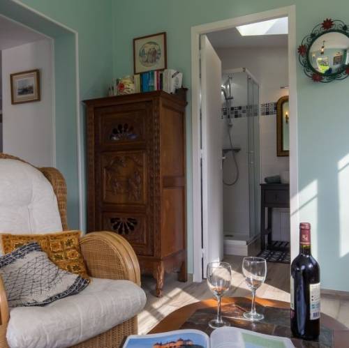 Planguenoual, FranciaCasa de dos viviendas "Valhalla-Jules ou Emile", muy bonita, rodeada de árboles, prados y campos. 2 apartamentos en la propiedad. En el barrio de Glolais, a 1 km del centro de Planguenoual, a 7 km del centro de Pléneuf-Val-André, a 20 km del centro de Saint-Brieuc, lugar tranquilo, a 3 km del mar, en el campo. Comunitario: terreno 1'000 m2 (vallado) con césped y plantas, bonito jardín para relajarse, aparcamiento (para 2 coches) junto a la casa en el mismo terreno. Tienda de comestibles 1 km, supermercado 3 km, restaurante 1 km, playa de arena "Val-André" 7 km. Puerto deportivo 5 km, campo de golf (9 hoyos) 5 km, escuela de vela 9 km, tenis 6 km. Atracciones en los alrededores: Port de Dahouet 4.9 km, Pleneuf-Val-André 7 km, Erquy 15 km, Cap Fréhel 25 km, St. Quay- Portrieux 39 km. "Valhalla, chez Jules", casa pareada 3 estancias 60 m2. Con mobiliario confortable y bonito: planta superior: (escalera exterior) salón-comedor abuhardillado con rincón-comedor y TV satélite. Salida al balcón. 1 dorm., abuhardillado con 1 cama de matrimonio (140 cm, 190 cm de longitud), lavabo. 1 dorm., abuhardillado con 2 camas (90 cm, 190 cm de longitud), lavabo. Salida al balcón. Rincón-cocina (horno, lavavajillas, 4 placas de vitrocerámica, tostadora, hervidor de agua eléctrico, microondas, congelador, cafetera eléctrica). Ducha/WC. Calefacción. 2 balcones, terraza. Muebles de terraza, muebles de balcón, barbacoa, tumbonas (4). Vista bonita al jardín. El alojamiento dispone de: lavadora, caja fuerte, plancha, trona, cuna hasta 2 años, secador de pelo. Internet (Wifi, gratis). A tener en cuenta: apartamento para no fumadores. Detector de humo.