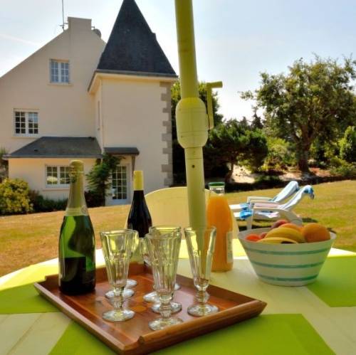 Penvénan, FranciaCasa unifamiliar "La Rotonde", bonita, rodeada de árboles y campos. A 1.5 km del centro de Port-Blanc, a 1.5 km del centro de Trévou-Tréguignec, a 5 km del centro de Penvénan, a 1.5 km del mar. Privado: jardín 5'000 m2 (vallado) con plantas y árboles, pradera, aparcamiento en el mismo terreno, garaje individual. Tienda de comestibles 1.5 km, restaurante 1.5 km, playa de arena 1.5 km. "La Rotonde (PPB102)", casa 6 estancias 200 m2 en 2 plantas. Con mobiliario bonito y agradable: salón-comedor con balcón acristalado con chimenea, mesa de comedor y TV satélite. Salida al balcón acristalado. 1 dorm. con 1 cama de matrimonio (140 cm). Cocina (horno, lavavajillas, 4 placas de vitrocerámica, tostadora, hervidor de agua eléctrico, microondas, congelador, cafetera eléctrica) con pequena mesa de comedor. Baño, WC separado. Planta superior: 1 dorm., abuhardillado con 1 cama de matrimonio (160 cm, 190 cm de longitud). 1 dorm., abuhardillado con 1 cama de matrimonio (140 cm). 1 dorm., abuhardillado con 1 cama. 1 dorm., abuhardillado con 1 cama (120 cm). Ducha/WC. Calefacción gasóleo. Terraza 16 m2, terraza 12 m2. Muebles de terraza, barbacoa (portátil), tumbonas (8). Vista espléndida al mar. El alojamiento dispone de: lavadora, trona, cuna, secador de pelo. Internet (Wifi, gratis). A tener en cuenta: casa para no fumadores. Detector de humo.