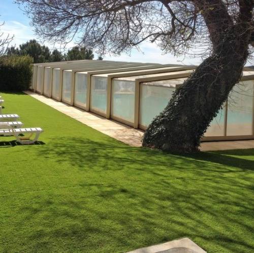 Solliès-Toucas, FranciaResort "Les Cottages Varois", bonito. 112 apartamentos en la residencia. A 800 m del centro de Solliès-Toucas, a 13 km del centro de Toulon, a 24 km del centro de Hyeres, lugar elevado en una pendiente, a 18 km del mar, en el campo. Comunitario: terreno 6 ha con árboles, jardín natural, piscina (250 m2, Disponible por temporada: 15.Abr. - 15.Oct.). Piscina para niños, tenis de mesa, petanca, parque infantil. En el complejo: recepción, bar, sauna, baño turco (todo con recargo), zona de spa de uso comunitario (extra), lavadora, secadora (uso comunitario, extra). Aparcamiento (número limitado) a 200 m en el mismo terreno. Tienda 800 m, estación de tren "Solliès Pont" 3 km, playa de arena "Baie de la Garonne" 18 km. A tener en cuenta: adecuado para familias. Carga y descarga de equipaje posible en la casa de vacaciones. La foto corresponde a una de las viviendas. Los alojamientos pueden diferir en la superficie habitable, la distribución de las estancias, el equipamiento y el mobiliario. Según la ubicación de los chalets, a unos 400 m de la recepción y la zona de la piscina. No hay acceso para niños y adolescentes menores de 18 años a la zona de bienestar con sauna y baño de vapor. "Les Cottages Varois (TOC110)", 2 estancias casa de campo 34 m2. Con mobiliario bonito: salón-comedor con mesa de comedor y TV. 1 dorm. con 1 cama de matrimonio (160 cm). 1 dorm. con 1 cama-nido (2 pers.). Rincón-cocina (2 fogones, lavavajillas, tostadora, hervidor de agua eléctrico, microondas, congelador, cafetera eléctrica). Ducha, WC separado. Calefacción eléctrica, aire acondicionado. Terraza 17 m2 parcialmente cubierta. Muebles de terraza. El alojamiento dispone de: trona, cuna (extra). Internet (Wifi, extra). A tener en cuenta: permitido máximo 2 mascotas / perros. Detector de humo, extintores. En raros casos, se omite el dormitorio con litera y entonces el sofá cama con cama extraíble en el salón. Debido al coronavirus (COVID-19) este alojamiento toma medidas para garantizar la seguridad de los huéspedes y el personal. Por consiguiente, es posible que algunos servicios e instalaciones sólo estén disponibles de manera limitada o que no estén disponibles en absoluto.