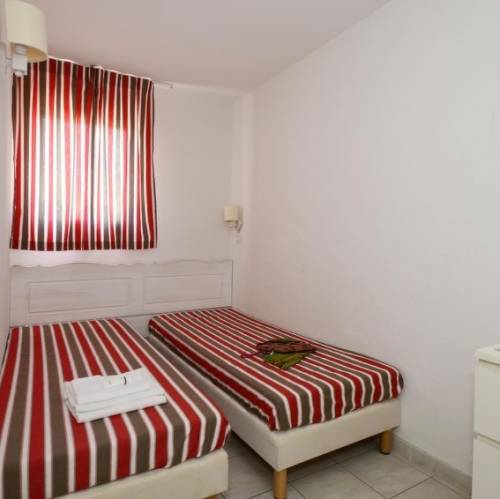 Portiragnes, FranciaResort "Tamaris/Portes du Soleil", idóneo para niños. 800 apartamentos en la residencia. A 500 m del centro de Portiragnes-Plage, a 4 km del centro de Portiragnes-Village, a 500 m del mar, a 500 m de la playa. Comunitario: terreno 18 ha (vallado) con plantas y árboles, 2 piscinas (570 m2, Disponible por temporada: 01.Abr. - 01.Oct. y 01.Jun. - 30.Sep.). WC en zona de piscina, piscina para niños, tobogán, ducha exterior, piscina de hidromasaje, tenis de mesa, básquet, petanca, voleibol, parque infantil. En el complejo: recepción, bar, bar, lavadora (extra), secadora (uso comunitario, extra). Servicio a domicilio de panecillos. Aparcamiento. Tienda 500 m, supermercado 5 km, playa de arena "Portiragnes-Plage" 500 m. Atracciones en los alrededores: Portiragnes village 4 km, Canal du Midi 800 m. A tener en cuenta: animación en la temporada. Guardería infantil en la temporada. La foto corresponde a una de las viviendas. "Tamaris/Portes du Soleil (PTI111)", casa adosada 3 estancias 53 m2 en 2 plantas. Con mobiliario funcional y con mucha madera: salón-dormitorio con 1 sofá-cama doble (140 cm, 190 cm de longitud), mesa de comedor y TV (pantalla plana), calefacción eléctrica. Rincón-cocina (4 fogones, microondas, cafetera eléctrica). WC separado, baño o ducha. Planta superior: (escalera empinada) 1 dorm., abuhardillado con 2 posibilidades para dormir (2 x 80 cm, 190 cm de longitud). 1 dorm., abuhardillado con 1 cama de matrimonio (140 cm, 190 cm de longitud). Terraza 12 m2. Muebles de terraza. El alojamiento dispone de: Internet (Wifi, gratis). Plaza de aparcamiento junto a la casa. A tener en cuenta: permitido máximo 2 mascotas / perros. Detector de humo.
