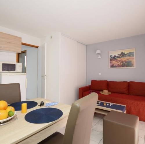Le Barcarès, FranciaResort "Le Lotus Blanc", idóneo para niños de 6 plantas del año 2015. 115 apartamentos en la residencia. A 5 km del centro de Le Barcarès, en la periferia, a 25 km del centro de Perpignan, a 100 m del mar, a 100 m de la playa. Comunitario: terreno, piscina (15 x 10 m, Disponible por temporada: 04.Abr. - 26.Sep.). Piscina para niños. En el complejo: recepción, restaurante, sauna (extra). Gimnasio (extra). Baño turco (extra). Ascensor, lavadora, secadora (uso comunitario, extra). Posibilidad de aparcamiento en la calle. Tienda 5 km, supermercado 5 km, playa de arena "Grand Plage" 100 m. A tener en cuenta: La foto corresponde a una de las viviendas. Los alojamientos pueden diferir en la superficie habitable, la distribución de las estancias, el equipamiento y el mobiliario. "Le Lotus Blanc (LBR200)" estudio 22 m2. Salón-dormitorio con 1 sofá-cama, 1 cama-nido, mesa de comedor y TV. Pequeña cocina abierta (lavavajillas, 2 placas de vitrocerámica, hervidor de agua eléctrico, microondas, cafetera eléctrica). Ducha/WC. Calefacción eléctrica. Balcón o terraza. El alojamiento dispone de: trona, cuna. Internet (Wifi, gratis). A tener en cuenta: apartamento para no fumadores. Permitido máximo 1 mascota / perro. Detector de humo, extintores. Debido al coronavirus (COVID-19) este alojamiento toma medidas para garantizar la seguridad de los huéspedes y el personal. Por consiguiente, es posible que algunos servicios e instalaciones sólo estén disponibles de manera limitada o que no estén disponibles en absoluto.