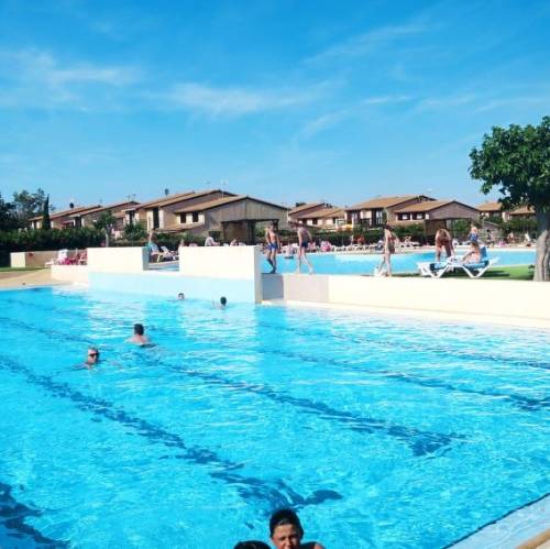 Portiragnes, FranciaResort "Tamaris/Portes du Soleil", idóneo para niños. 800 apartamentos en la residencia. A 500 m del centro de Portiragnes-Plage, a 4 km del centro de Portiragnes-Village, a 500 m del mar, a 500 m de la playa. Comunitario: terreno 18 ha (vallado) con plantas y árboles, 2 piscinas (570 m2, Disponible por temporada: 01.Abr. - 01.Oct. y 01.Jun. - 30.Sep.). WC en zona de piscina, piscina para niños, tobogán, ducha exterior, piscina de hidromasaje, tenis de mesa, básquet, petanca, voleibol, parque infantil. En el complejo: recepción, bar, bar, lavadora (extra), secadora (uso comunitario, extra). Servicio a domicilio de panecillos. Aparcamiento. Tienda 500 m, supermercado 5 km, playa de arena "Portiragnes-Plage" 500 m. Atracciones en los alrededores: Portiragnes village 4 km, Canal du Midi 800 m. A tener en cuenta: animación en la temporada. Guardería infantil en la temporada. La foto corresponde a una de las viviendas. "Tamaris/Portes du Soleil (PTI121)", casa adosada 3 estancias 53 m2 en 2 plantas. Con mobiliario funcional y con mucha madera: salón-dormitorio con 1 sofá-cama doble (140 cm, 190 cm de longitud), mesa de comedor y TV (pantalla plana), calefacción eléctrica y aire acondicionado. Rincón-cocina (4 fogones, lavavajillas, hervidor de agua eléctrico, microondas, congelador, cafetera eléctrica, Cápsulas de café (Senséo)). WC separado, baño o ducha. Planta superior: (escalera empinada) 1 dorm., abuhardillado con 2 posibilidades para dormir (2 x 80 cm, 190 cm de longitud). 1 dorm., abuhardillado con 1 cama de matrimonio (140 cm, 190 cm de longitud). Terraza 12 m2. Muebles de terraza, barbacoa, tumbonas (2). El alojamiento dispone de: Internet (Wifi, gratis). Plaza de aparcamiento junto a la casa. A tener en cuenta: permitido máximo 2 mascotas / perros. Detector de humo.