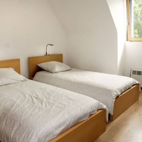 Audierne, FranciaResort "Domaine de la Baie", idóneo para niños. 118 apartamentos en la residencia. A 2 km del centro de Audierne, a 22 km del centro de Douarnenez, a 40 km del centro de Quimper, a 3 km del mar. Comunitario: terreno 6 ha, parque con césped y árboles, pradera, piscina climatizada, vallada (Disponible por temporada: 01.Ene. - 31.Dic.). Terraza. En el complejo: recepción, acceso a internet, Wifi, sauna, gimnasio, baño turco, tenis de mesa, billar, lavadora, secadora (uso comunitario, extra). Aparcamiento en el mismo terreno. Tienda 50 m, supermercado 3 km, playa de arena 3 km. A tener en cuenta: animación en la temporada. La foto corresponde a una de las viviendas. Los alojamientos pueden diferir en la superficie habitable, la distribución de las estancias, el equipamiento y el mobiliario. "Domaine de la Baie (ADN403)", casa adosada 4 estancias 54 m2 en 2 plantas. Con mobiliario funcional: salón-dormitorio con 1 sofá-cama doble, mesa de comedor y alquiler de TV opcional. Salida a la terraza. 1 dorm. con 1 cama de matrimonio. Rincón-cocina (lavavajillas, 4 placas de vitrocerámica, tostadora, hervidor de agua eléctrico, microondas, cafetera eléctrica). Ducha. Planta superior: 2 dorm., cada habitación con 2 camas. Baño, WC separado. Calefacción eléctrica. Terraza. Muebles de terraza. El alojamiento dispone de: Internet (Wifi, extra). A tener en cuenta: apartamento para no fumadores. Detector de humo, extintores. El alojamiento es una casa tipo ejemplo o un apartamento tipo ejemplo.