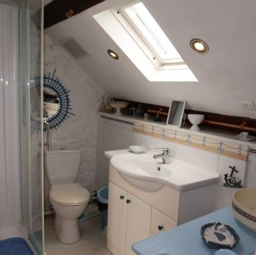 Locquirec, FranciaCasa de dos viviendas "Ty-Rozen", bonita. En el barrio de Moulin Mer, a 2.3 km del centro de Locquirec, a 5.5 km del centro de Plestin-les-Grèves, a 20 km del centro de Morlaix, a 800 m del mar. Privado: terreno 100 m2 (vallada), jardín pequeño con césped, aparcamiento (para 2 coches) en el mismo terreno. Tienda 2.5 km, tienda de comestibles 1.5 km, supermercado 5.5 km, restaurante 2.5 km, panadería 2.5 km, playa de arena "Moulin de la Rive" 800 m. Campo de golf (18 hoyos) 32 km, escuela de surf 800 m, escuela de vela 2.3 km, rutas de senderismo desde la casa 700 m. Atracciones en los alrededores: Morlaix 20 km, Lannion 20 km, Ploumanac'h, Côte sdu Granit Rose 35 km, Plomeur-Boudou 29 km, Huelgoat 47 km, Carnoet, Vallée des Saints 45 km. A tener en cuenta: el propietario vive en el mismo terreno. "Ty-Rozen (LOQ219)", casa pareada 3 estancias 40 m2 en 2 plantas. Vivienda adecuada para 2 adultos + 1 niño. Con mobiliario funcional y agradable: cocina-comedor (lavavajillas, 4 placas de vitrocerámica, tostadora, hervidor de agua eléctrico, cafetera eléctrica, microondas/grill) con mesa de comedor y TV satélite. Salida a la terraza. Ducha/WC. Calefacción eléctrica. Planta superior: habitación de paso abuhardillada con tragaluz con 1 cama de matrimonio (160 cm). 1 dorm., abuhardillado, abierto con tragaluz con 1 cama. Terraza pequeña. Muebles de terraza, barbacoa (portátil), tumbonas (2), rincón para sentarse. El alojamiento dispone de: lavadora, trona. Internet (Wifi, gratis). A tener en cuenta: apartamento para no fumadores. 1 mascota / perro. Detector de humo. No hay conexión interna entre las diferentes unidades.