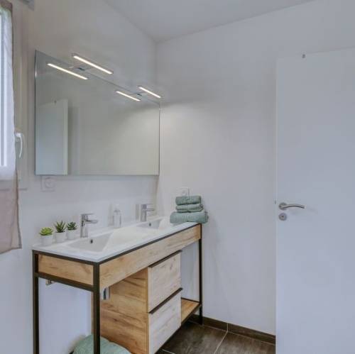 Vertheuil, FranciaCasa unifamiliar "La Vertheuillaise", bonita, agradable. A 200 m del centro de Vertheuil, a 12 km del centro de Lesparre, a 12 km del centro de Pauillac, en un barrio residencial, a 32 km del mar, a 9 km del río. Comunitario: jardín 1'800 m2 (vallado) con plantas y árboles, pradera. Privado: piscina (5 x 5 m, 170 cm de profundidad, Disponible por temporada: 01.Jun. - 30.Sep.). Terraza, muebles de jardín, mantenimiento de la piscina a través del propietario/jardinero aparcamiento (para 2 coches) junto a la casa en el mismo terreno. Supermercado 200 m, playa de arena "Naujac-sur-Mer, Hourtin-Plage" 32 km. A tener en cuenta: residencia con puertas de cierre eléctrico. El propietario vive en el mismo terreno. "La Vertheuillaise (VHL100)", casa 2 estancias 80 m2 en 2 plantas. Luminoso, con mobiliario bonito y agradable: salón-comedor con mesa de comedor, radio y CD. Salida al jardín. Grande cocina (lavavajillas, 2 placas de vitrocerámica, tostadora, hervidor de agua eléctrico, microondas, congelador, cafetera eléctrica) con chimenea (sólo con función decorativa). Salida al jardín. Ducha/WC, doble lavabo. Planta superior: altillo abuhardillado, abierto con 2 camas (90 cm, 190 cm de longitud). 1 dorm., abuhardillado, abierto con tragaluz con 1 cama de matrimonio (140 cm, 190 cm de longitud). Calefacción eléctrica. Muebles de terraza, tumbonas (4), trastero. El alojamiento dispone de: plancha. Internet (Wifi, gratis). A tener en cuenta: casa para no fumadores. Detector de humo.