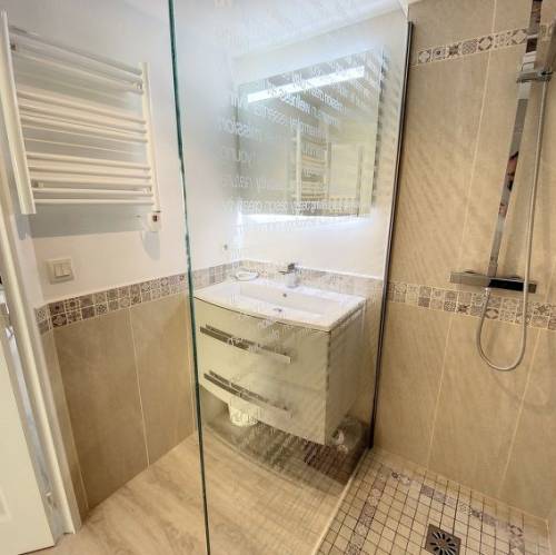 Mandelieu-la-Napoule, FranciaResidencia "Carré Marine", de 3 plantas. 3 casas en la residencia. 40 apartamentos en la residencia. A 2 km del centro de Mandelieu, a 7.5 km del centro de Cannes, a 40 km del centro de Nice, a 1.5 km del mar, a 20 m del río. Comunitario: terreno 12'000 m2 (vallado) con césped y árboles, piscina vallada (15 x 8 m, 120 - 210 cm de profundidad, Disponible por temporada: 04.Abr. - 31.Oct. horario piscina: 09:00-20:00). WC en zona de piscina, piscina para niños, ducha exterior, tenis de mesa, petanca, parque infantil. En el inmueble: recepción, Wifi, ascensor, lavadora, secadora (uso comunitario, extra). Supermercado 2.4 km, playa de arena 1.5 km. Campo de golf (18 hoyos) 2.6 km. A tener en cuenta: amarre privado (extra) a demanda. La foto es sólo un ejemplo de una vivienda tipo. Los alojamientos pueden diferir en la superficie habitable, la distribución de las estancias, el equipamiento y el mobiliario. "Carré Marine (MAD121)", apartamento de 3 estancias 53 m2. Luminoso, con mobiliario moderno: salón-dormitorio con 1 sofá-cama, 1 cama-nido, mesa de comedor y TV. 1 dorm. con 1 cama de matrimonio (160 cm). Salida al jardín. 1 dorm. con 2 camas. Salida al jardín. Cocina abierta (horno pequeño, horno, lavavajillas, 4 placas de vitrocerámica, microondas, cafetera eléctrica). Baño, WC separado. Calefacción, aire acondicionado. Balcón o terraza cubierta. Muebles de terraza. Vista al mar. El alojamiento dispone de: plancha. Internet (Wifi, extra). Plaza de aparcamiento. A tener en cuenta: permitido máximo 1 mascota / perro. Detector de humo, extintores. Debido al coronavirus (COVID-19) este alojamiento toma medidas para garantizar la seguridad de los huéspedes y el personal. Por consiguiente, es posible que algunos servicios e instalaciones sólo estén disponibles de manera limitada o que no estén disponibles en absoluto.