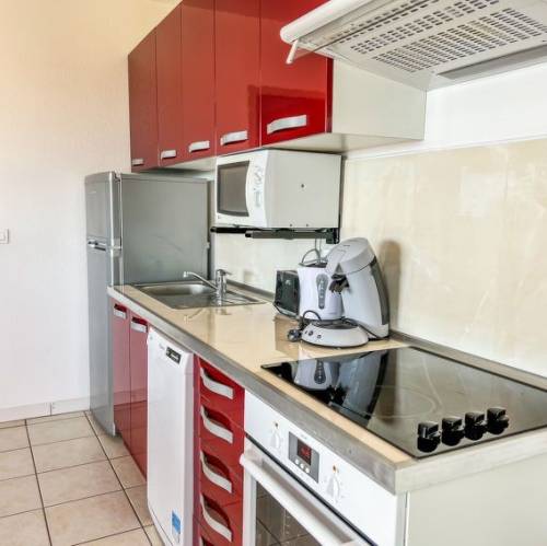 Porto Vecchio, FranciaResidencia "Via Mare", bonita, confortable. 40 apartamentos en la residencia. A 8 km del centro de Porto Vecchio, a 34 km del centro de Bonifacio, a 143 km del centro de Bastia, lugar soleado, elevado en una pendiente, a 3 km del mar, en el campo. Comunitario: terreno en estado natural 5 ha (vallado) con plantas y árboles, jardín natural, piscina vallada (15 x 8 m, Disponible por temporada: 16.Abr. - 15.Oct.). Ducha exterior, petanca, terraza. En el complejo: recepción, bar, Wifi, gimnasio, hammam, lavadora, secadora (uso comunitario, extra). Cambio de sábanas (suplemento extra). Cambio de toallas (suplemento extra). Posibilidad de limpieza 1 vez por semana (extra). Servicio a domicilio de panecillos posibilidad: bajo petición. Aparcamiento en el mismo terreno. Tienda 2.5 km, supermercado 8 km, bar 3 km, playa de arena "St. Cyprien & Pinarellu" 3 km. A tener en cuenta: coche recomendable. Residencia con puertas de cierre eléctrico. La foto corresponde a una de las viviendas. Los alojamientos pueden diferir en la superficie habitable, la distribución de las estancias, el equipamiento y el mobiliario. "T2 vue mer (PVC513)", apartamento de 2 estancias 42 m2. Con mobiliario bonito y moderno: salón-dormitorio con 1 sofá-cama doble (160 cm), mesa de comedor y TV satélite. 1 dorm. con 1 cama de matrimonio (160 cm). Rincón-cocina (horno, lavavajillas, 2 placas de vitrocerámica, tostadora, microondas, cafetera eléctrica). Ducha/WC. Calefacción eléctrica, aire acondicionado. Terraza. Muebles de terraza, barbacoa. Vista panorámica bonita al mar, a la bahía y Ile San Ciprianu. El alojamiento dispone de: caja fuerte. A tener en cuenta: adecuado para familias. Apartamento para no fumadores. Detector de humo. Oferta de un propietario comercial según el art. 155, IV, CGI