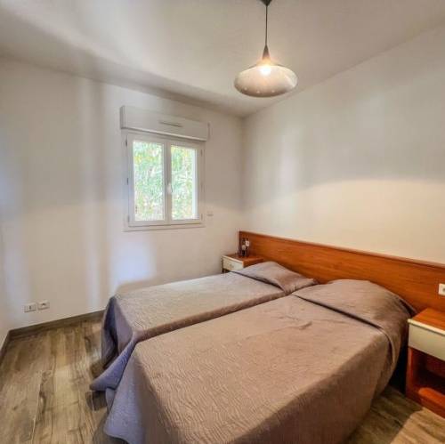 Ghisonaccia, FranciaResort "A Suara", moderno, bonito, reformado en 2019. 18 casas en la residencia. A 4 km del centro de Ghisonaccia, a 60 km del centro de Porto Vecchio, a 90 km del centro de Bastia, a 1.3 km del mar. Comunitario: jardín, cuidado 12'000 m2 (vallado) con plantas y árboles, pradera, piscina vallada (12 x 6 m, Disponible por temporada: 15.May. - 31.Oct.). Terraza, parque infantil. En el complejo: recepción. Aparcamiento en el mismo terreno. Supermercado, restaurante 50 m, playa de arena 1.3 km. Centro ecuestre 500 m. A tener en cuenta: coche recomendable. Residencia con puertas de cierre eléctrico. La foto corresponde a una de las viviendas. "A Suara (GHI160)", casa 3 estancias 45 m2. Reformada en 2019, con mobiliario bonito y moderno: salón-comedor con 1 sofá-cama doble, mesa de comedor, TV, pantalla plana y aire acondicionado. Salida a la terraza. 1 dorm. con 1 cama de matrimonio. 1 dorm. con 2 camas. Cocina abierta (horno, lavavajillas, 4 placas de vitrocerámica, microondas, congelador, cafetera eléctrica). Ducha/WC. Calefacción eléctrica. Terraza cubierta. Muebles de terraza, barbacoa. El alojamiento dispone de: Internet (Wifi, gratis). A tener en cuenta: apartamento para no fumadores. Permitido máximo 1 mascota / perro. Detector de humo. Oferta de un propietario comercial según el art. 155, IV, CGI