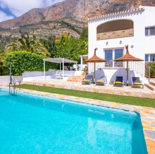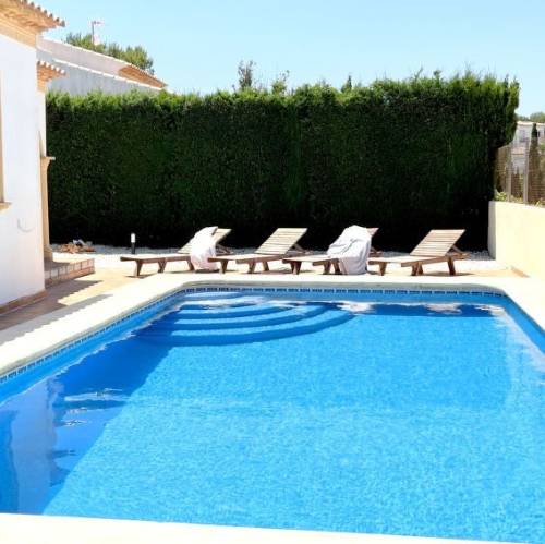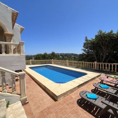 Jávea, EspañaVilla "Sweet Dream", muy amplia, muy bonita, muy confortable. En el barrio de Panorama, en la localidad, a 4.5 km del centro de Javea - El Arenal, lugar tranquilo, soleado, a 3 km del mar, a 3 km de la playa. Privado: jardín grande, bonito, cuidado con césped, piscina rectangular (10 x 5 m, 40 - 210 cm de profundidad, Disponible por temporada: 01.Ene. - 31.Dic.) con escalera interior. Ducha exterior, casita de piscina con nevera, porche, terraza, muebles de jardín, caseta de barbacoa, aparcamiento en el mismo terreno. Supermercado 2.5 km, restaurante 500 m, playa de arena "El Arenal Javea" 4.5 km, playa de piedras "El Portitxol La Barraca" 4.8 km, playa rocosa "Cala Blanca" 4.9 km. Puerto deportivo 4.7 km, campo de golf 9.5 km, escuela de surf 4.5 km, escuela de vela 4.5 km, tenis 4.5 km. El propietario no acepta grupos de adolescentes/jóvenes. "Villa Sweet Dream", villa 5 estancias 300 m2 en 2 plantas. Espacioso y luminoso, con mobiliario muy bonito y de estilo: salón-comedor con TV digital, aire acondicionado y bomba de calor, caliente. Salida pérgola, a la terraza-jardín, a la piscina. 1 dorm. con 2 camas (90 cm, 200 cm de longitud). Salida pérgola, a la terraza-jardín, a la piscina. Grande cocina (horno, lavavajillas, 4 placas de vitrocerámica, tostadora, hervidor de agua eléctrico, microondas, congelador, cafetera eléctrica). Baño/WC, doble lavabo. Planta superior: 1 dorm. con 1 cama de matrimonio (150 cm, 200 cm de longitud), aire acondicionado y bomba de calor, caliente. Salida a la terraza. 1 dorm. con 1 cama de matrimonio (150 cm, 200 cm de longitud). 1 dorm. con 2 camas (90 cm, 200 cm de longitud). Ducha/bidet/WC. Terraza grande, orientación norte terraza grande, orientación sur, jardín grande, césped. Muebles de terraza, barbacoa, tumbonas, porche, rincón para sentarse. Vista muy bonita al mar, a las montañas y al valle. El alojamiento dispone de: lavadora, plancha, secador de pelo. Internet (Wifi, gratis). Plaza de aparcamiento, garaje. A tener en cuenta: TV solamente ES. *jacuzi solo decorativo (no funciona). VT-489590-A