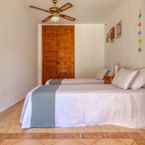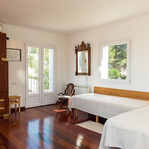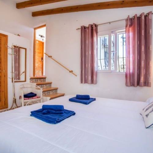 Jávea, EspañaCasa "Pomeraj", de 2 plantas. En el barrio de Trencall, lugar tranquilo, soleado en un barrio residencial, a 5 km del mar. Privado: jardín 900 m2 (vallado) con plantas, piscina (4 x 9 m, Disponible por temporada: 01.Ene. - 31.Dic.) con escalera interior. En el inmueble: calefacción central. Supermercado 2 km, restaurante 200 m, playa de arena "Arenal" 5 km. Tenis 2 km. Grupos de jóvenes sólo bajo petición. Casa 5 estancias 180 m2. Con mobiliario funcional: salón-comedor con chimenea, TV satélite y TV digital (pantalla plana), ventilador. Salida a la terraza. 1 dorm. con 1 cama de matrimonio, baño/ducha/WC, doble lavabo y ventilador. 1 dorm. con 2 camas y ventilador. Grande cocina (horno, lavavajillas, microondas, congelador, cafetera eléctrica). Ducha/WC. Planta superior: 1 dorm. con 1 cama de matrimonio y ventilador. 1 dorm. con 2 camas y ventilador. Ducha/WC. Muebles de terraza, barbacoa, tumbonas (8). Vista al paisaje. El alojamiento dispone de: lavadora, trona, cuna. Internet (Wifi, gratis). Plaza de aparcamiento (vallada, 2 Coches) junto a la casa. A tener en cuenta: apartamento para no fumadores. 1 mascota / perro. TV solamente ES. AT-438544-A