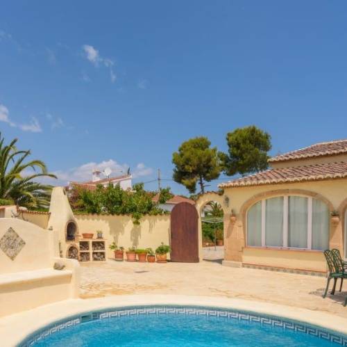 Jávea, EspañaCasa "Patrai". En el barrio de Montañar II, lugar tranquilo, soleado, a 200 m del mar, en una calle sin salida. Privado: jardín 1'000 m2 con césped, piscina (5 x 9 m, Disponible por temporada: 01.Ene. - 31.Dic.) con escalera interior. Ducha exterior. Tienda, supermercado, restaurante 900 m, playa de arena "Arenal" 900 m, playa de piedras "Caleta" 200 m. El propietario no acepta grupos de adolescentes/jóvenes. Vecindario muy sensible a ruidos. Se ruega respetar la tranquilidad y normas de buen comportamiento. Casa 4 estancias 80 m2. Con mobiliario funcional: salón-comedor con chimenea, TV digital y aire acondicionado. Salida a la terraza. 3 dorm., cada habitación con 2 camas. Cocina (horno, microondas, congelador). 2 baño/bidet/WC. Terraza grande cubierta terraza grande. Muebles de terraza, barbacoa, tumbonas (2). El alojamiento dispone de: lavadora. Plaza de aparcamiento (4 Coches) junto a la casa. AT-440955-A