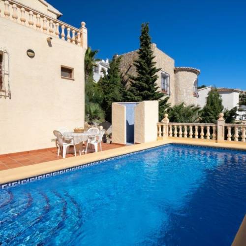 Moraira, EspañaCasa "Encinas", agradable. A 1 km del centro de Moraira, lugar tranquilo, soleado, a 1 km del mar, a 1 km de la playa, en una calle sin salida. Privado: terreno 800 m2 (vallada), jardín grande, bonito, cuidado, piscina rectangular (4 x 8 m, Disponible por temporada: 01.Ene. - 31.Dic.) con escalera interior. Ducha exterior. En el inmueble: calefacción central, aire acondicionado, lavadora, secadora. Aparcamiento (para 2 coches) en el mismo terreno, garaje individual. Tienda 1 km, supermercado 1 km, restaurante 500 m, playa de arena 1 km. A tener en cuenta: coche recomendable. Adecuado para familias. "Casa Encinas", casa 4 estancias 100 m2. Con mobiliario moderno y de buen gusto: salón-comedor grande con mesa de comedor, TV satélite, TV digital, pantalla plana, aire acondicionado y persianas eléctricas. Salida a la terraza. 1 dorm. con 1 cama doble, ducha/WC, aire acondicionado y persianas eléctricas. 1 dorm. con 2 camas (90 cm, 200 cm de longitud), aire acondicionado y persianas eléctricas. 1 dorm. con 1 cama doble, aire acondicionado y persianas eléctricas. Cocina abierta (horno, lavavajillas, 4 placas de vitrocerámica, microondas, congelador, cafetera eléctrica). Baño. Calefacción. Terraza grande parcialmente cubierta. Muebles de terraza, barbacoa, tumbonas. El alojamiento dispone de: lavadora. Internet (Wifi, gratis). Plaza de aparcamiento (2 Coches), garaje. Adecuado para familias. 1 mascota / perro. AT-451783-A
