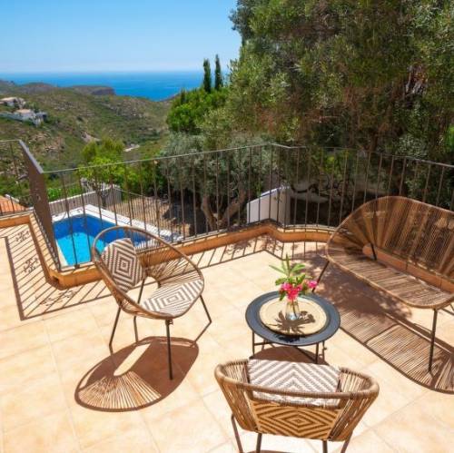 Moraira, EspañaBenitachell: Casa "Vista al Mar", amplia, muy bonita, confortable de 2 plantas, reformada. En el barrio de Cumbre del Sol, lugar aislado, tranquilo, soleado en una colina. Privado: terreno 1'000 m2 (vallada), jardín grande, piscina rectangular (10 x 5 m, Disponible por temporada: 01.Abr. - 31.Oct.) con escalera interior. Barbacoa. En el inmueble: aire acondicionado, lavadora, secadora. Aparcamiento (para 2 coches). Supermercado, restaurante 500 m, playa de gravilla 1.2 km. Casa 7 estancias 200 m2 en 2 plantas. Espacioso y luminoso, reformada, con mobiliario muy confortable y bonito: salón-comedor grande con invernadero con chiminea nórdica, TV satélite, pantalla plana y aire acondicionado. Salida a la terraza, a la piscina. 1 dorm. doble con ducha/WC y aire acondicionado. Salida a la terraza, a la piscina. 1 dorm. doble con aire acondicionado. 1 dorm. con 1 cama de matrimonio (140 cm, 200 cm de longitud). Cocina abierta (horno, lavavajillas, X placas de vitrocerámica, microondas, congelador). Ducha/WC. En planta inferior: (escalera exterior) salón-comedor. Salida al jardín, a la terraza. 1 dorm. con 1 cama de matrimonio. 1 dorm. con 2 camas y aire acondicionado. Cocina abierta (horno, X placas de vitrocerámica, microondas, congelador). Ducha/WC. 3 terrazas grandes. Muebles de terraza, tumbonas. Vista espléndida al mar, a las montañas y al paisaje. El alojamiento dispone de: lavadora, secadora. Internet (Wifi, gratis). Plaza de aparcamiento (vallada). A tener en cuenta: adecuado para familias. Apartamento para no fumadores. AT-441001-A