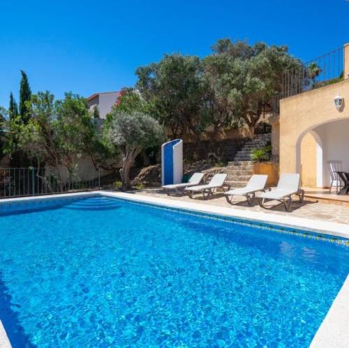 Moraira, EspañaCasa "Isla Bonita", amplia, bonita de 2 plantas. En el barrio de Golden Valley, lugar tranquilo, soleado, a 2.8 km del mar, a 2.8 km de la playa. Privado: terreno 3'350 m2, jardín, piscina (10 x 5 m, Disponible por temporada: 01.Ene. - 31.Dic.) con escalera interior. Ducha exterior. En el inmueble: Wifi, calefacción central. Aparcamiento (para 4 coches) en el mismo terreno. Tienda 2 km, tienda de comestibles 2 km, supermercado 2 km, restaurante 2 km, playa de arena "El Portet" 2.8 km. Tenis 4 km, parque infantil 4 km. A tener en cuenta: adecuado para familias. "Isla Bonita", casa 9 estancias 310 m2 en 2 plantas. Espacioso, con mobiliario funcional y agradable: salón-comedor con chimenea y TV satélite. Salida a la terraza. 2 dorm. dobles. Cocina (horno, lavavajillas, grill) con mesa de comedor. Baño/bidet/WC, ducha/bidet/WC, 2 baños/duchas/WC. En planta inferior: 3 dorm. dobles. Terraza grande cubierta, 2 terrazas grandes, terraza-jardín grande. Muebles de terraza, barbacoa. Vista espléndida al mar, a las montañas y al paisaje. El alojamiento dispone de: lavadora, cuna hasta 3 años. Internet (Wifi, gratis). Plaza de aparcamiento (cubierto, 2 Coches). Permitido máximo 1 mascota / perro. AT-440997-A
