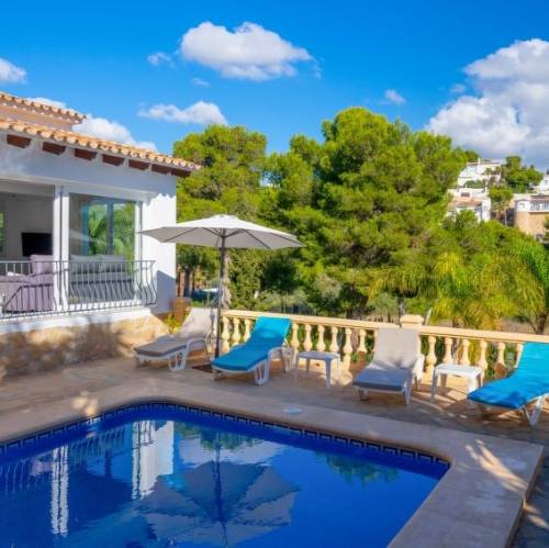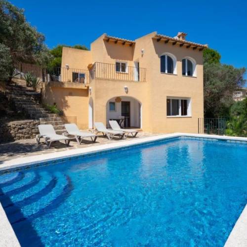Moraira, EspañaPla del Mar: Casa unifamiliar "Pla del Mar". A 1.3 km del centro de Moraira. Privado: terreno 800 m2 (vallada), piscina (8 x 4 m, Disponible por temporada: 01.Ene. - 31.Dic.). Ducha exterior, terraza, muebles de jardín, barbacoa. Supermercado, restaurante, bar 300 m, playa de arena 1.6 km. Tenis 1.4 km. Casa 3 estancias 85 m2. Salón-comedor 20 m2 con TV satélite. Salida a la terraza. 1 dorm. doble. 1 dorm. doble con ducha/WC. Cocina abierta (horno, lavavajillas, microondas, congelador). Baño/WC. Ningún tipo de calefacción. Tumbonas. El alojamiento dispone de: lavadora. Internet (Wifi, gratis). Plaza de aparcamiento (2 Coches). AT-435049-A