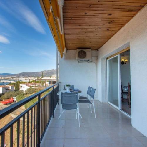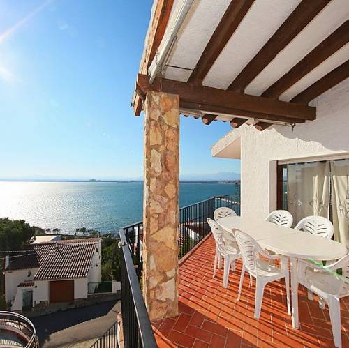Rosas, EspañaPuig Rom: Casa de dos viviendas "Prudenci". A 3 km del centro de Roses, lugar tranquilo, soleado en una colina, area residencial (villas), zona con poco tráfico, a 3 km del mar, a 2 km de la playa, en una calle sin salida. Acceso por escaleras (15 escalones) hasta la casa. Supermercado 3 km, restaurante 3 km, bar 1.5 km, parada de autobús 2 km, estación de tren "Figueres" 15 km, playa de arena "Canyelles petites" 3 km, piscina cubierta 3 km, cala para bañarse 3 km. Puerto deportivo 3 km, campo de golf 15 km, tenis 3 km. Atracciones en los alrededores: Parque Acuático Aquabrava Roses 6 km, Centro paracaidismo y túnel del viento 11 km, Museo Dalí Figueres 23 km, Casino y festival de Peralada 24 km, Monaterio Sant Pere de Rodes 24 km, Cadaqués 17 km. A tener en cuenta: coche recomendable. Apartamento de 3 estancias 60 m2 en el 1° piso, orientación sureste. Luminoso, con mobiliario funcional y confortable: salón-comedor con TV satélite. 1 dorm. con 2 camas. 1 dorm. con 1 cama de matrimonio. Cocina abierta (4 fogones, microondas). Baño/bidet/WC. Ningún tipo de calefacción. Terraza. Muebles de terraza. Vista panorámica espléndida al mar y a las montañas. A tener en cuenta: TV solamente FR. HUTG010789