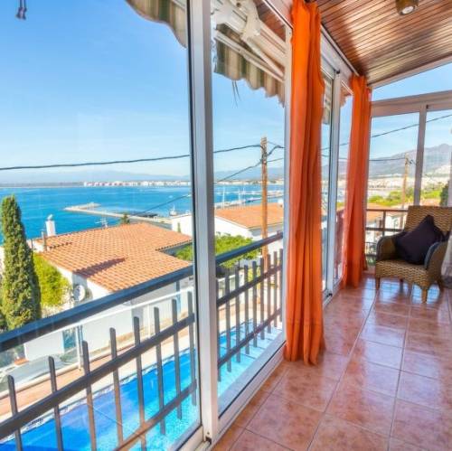 Rosas, EspañaCasa "Joan Sarda", de 3 plantas. En el barrio de Els Balins, a 1.5 km del centro de Roses, lugar tranquilo, soleado en una pendiente, zona con poco tráfico, a 300 m del mar. Privado: piscina (5 x 6 m, 120 cm de profundidad, Disponible por temporada: 01.Jun. - 30.Sep.). Terraza, muebles de jardín. En el inmueble: Wifi, lavadora. Acceso por escaleras hasta la casa. Aparcamiento (para 2 coches). Tienda de comestibles 400 m, supermercado 1 km, restaurante 1 km, bar 1 km, café 500 m, playa de arena "Palangres", cala para bañarse 300 m. Puerto deportivo 1 km, campo de golf (12 hoyos) 15 km, tenis 4 km, minigolf 4 km. Atracciones en los alrededores: Parque Acuático Aquabrava Roses 4 km, Túnel del viento y Skydive Empuriabrava 6 km, Cadaqués 16 km, Castillo y festival de Peralada 23 km, Museo Dalí Figueres 21 km, Monasterio de Sant Pere de Rodes 23 km. A tener en cuenta: coche recomendable. Grupos de jóvenes sólo bajo petición. Casa 5 estancias 130 m2 en 3 plantas. Entrada. 1 dorm. con 1 cama de matrimonio. Ducha/WC. Calefacción. Planta superior: salón-comedor con chimenea y TV. Salida a la terraza. 1 dorm. con 1 cama de matrimonio. 1 dorm. con 2 camas. Cocina abierta (horno, lavavajillas, microondas). Baño/bidet/WC. Planta superior 2: 1 dorm. con 1 cama de matrimonio. Salida a la terraza. Terraza 5 m2, terraza 15 m2. Muebles de terraza. Vista espléndida al mar. El alojamiento dispone de: lavadora. Internet (Wifi, gratis). Garaje (2 Coches). A tener en cuenta: 1 mascota / perro. TV solamente ES. HUTG010542