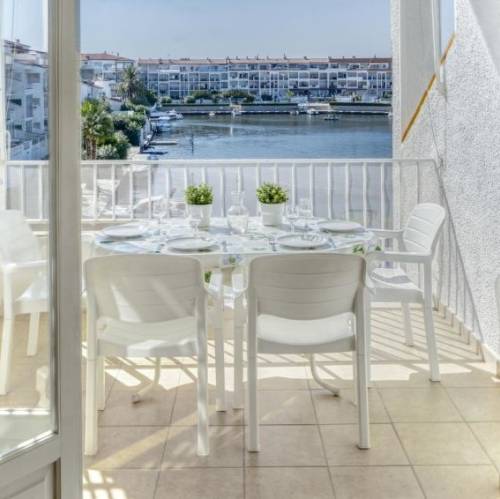 Empuriabrava, EspañaResidencia "Sant Maurici", bonita, confortable. En el barrio de Lago San Mauricio, a 2 km del centro de Empuriabrava, lugar soleado, a 2.5 km del mar, a orillas del lago, orientación suroeste. Comunitario: jardín grande, bonito, cuidado (vallado) con césped y plantas, piscina rectangular (10 x 15 m, 100 - 190 cm de profundidad, Disponible por temporada: 15.Abr. - 15.Oct.). Piscina para niños. En el complejo: tienda de comestibles 50 m, supermercado 10 m, restaurante 50 m, bar 10 m, parada de autobús 500 m, playa de arena "Empuriabrava" 2.5 km. Puerto deportivo 4 km, campo de golf (15 hoyos) 3 km, escuela de surf 3 km, escuela de vela 3 km, tenis 900 m, minigolf 1 km, centro ecuestre 2 km. Atracciones en los alrededores: Túnel del Viento Empuriabrava 950 m, Parque Acuático Aquabrava Roses 6 km, Casino y festival de Peralada 14 km, Museo Dalí Figueres 15 km, Ruïnes de Empúries 21 km, Cadaqués 21 km. Apartamento de 3 estancias 50 m2 en el 2° piso. Con mobiliario funcional y confortable: salón-comedor con mesa de comedor, TV satélite y ventilador. Salida a la terraza. 1 dorm. con 1 cama de matrimonio (160 cm, 200 cm de longitud). 1 dorm. con 2 camas (90 cm, 190 cm de longitud), ventilador. Cocina (horno, lavavajillas, 3 placas de vitrocerámica, tostadora, hervidor de agua eléctrico, microondas, congelador, cafetera eléctrica). Baño/WC. Ningún tipo de calefacción. Terraza 10 m2. Muebles de terraza. Vista a la piscina y al jardín. El alojamiento dispone de: lavadora, plancha, secador de pelo. Internet (Wifi, gratis). Plaza de aparcamiento n. 5. A tener en cuenta: apartamento para no fumadores. TV solamente FR. Sin ascensor. R00000001