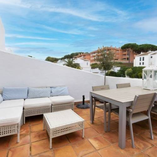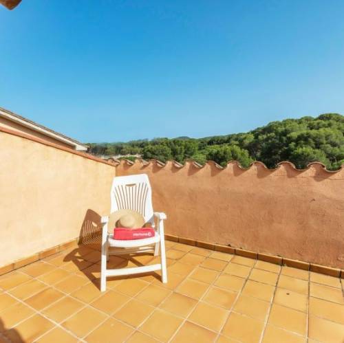 Pals, EspañaCasa semiadosada "Melis III". A 200 m del centro de Platja de Pals, a 500 m del mar. Acceso por escaleras (18 escalones) hasta la casa. Tienda de comestibles, restaurante 200 m, playa de arena "Playa de Pals" 500 m. Campo de golf 1.5 km, tenis 700 m. "Melis II 2", casa adosada 3 estancias 80 m2 en 2 plantas. Con mobiliario funcional: salón-comedor con 1 sofá-cama doble (135 cm, 190 cm de longitud), chimenea y TV satélite. Salida a la terraza. Cocina (horno, tostadora, hervidor de agua eléctrico, microondas, cafetera eléctrica) con barra americana. Planta superior: 1 dorm. con 2 camas (90 cm, 190 cm de longitud), baño/WC y estufa eléctrica. Salida al balcón. 1 dorm. con 2 camas (90 cm, 190 cm de longitud). Ducha/WC. Terraza 10 m2, terraza 14 m2. Muebles de terraza. El alojamiento dispone de: lavadora, plancha, trona, cuna, secador de pelo. Internet (Wifi, gratis). Plaza de aparcamiento, garaje. HUTG-001766