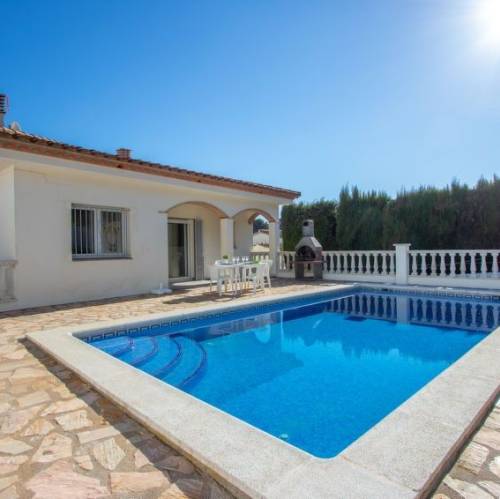 l'Escala, EspañaCasa semiadosada "Villa Jade", rodeada de árboles. En la periferia, a 3 km del centro de L'Escala, excelente situación: muy céntrica pero tranquila, a 700 m de la playa. Comunitario: jardín, cuidado (vallado) plantas y árboles, piscina rectangular (7 x 14 m, 90 - 180 cm de profundidad, Disponible por temporada: 01.May. - 30.Oct.). Ducha exterior. Privado: jardín (vallado) plantas y flores, aparcamiento junto a la casa, garaje individual. Tienda de comestibles, supermercado, centro comercial, restaurante, bar 700 m, playa de arena "Platja de Riells" 700 m, centro de buceo 1 km. Puerto deportivo 1 km. Atracciones en los alrededores: Ruinas greco-romanas d'Empuries 3.7 km, Museo Dalí Figueres 26 km, Parque acuatico Aquabrava de Roses 27 km, Skydive Empuriabrava 23 km, Casino-Festival de Perelada 30 km, Pitch and Putt Gualta - 18 hoyos 15 km. El propietario no acepta grupos de adolescentes/jóvenes. Vecindario muy sensible a ruidos. Se ruega respetar la tranquilidad y normas de buen comportamiento. "Villa Jade", casa 4 estancias 96 m2 en 2 plantas. Luminoso, con mobiliario funcional y confortable: salón-comedor con mesa de comedor y TV digital. Salida a la terraza, a la piscina. Cocina (horno, lavavajillas, 3 Placas de inducción, tostadora, hervidor de agua eléctrico, microondas, congelador, cafetera eléctrica). WC separado. Ningún tipo de calefacción. Planta superior: 1 dorm. para niños con 1 x 2 literas (90 cm, 200 cm de longitud). 1 dorm. con 1 cama de matrimonio (135 cm, 200 cm de longitud). 1 dorm. con 1 cama de matrimonio (150 cm, 200 cm de longitud). Baño/bidet/WC. Terraza 20 m2. Muebles de terraza, barbacoa. El alojamiento dispone de: lavadora, plancha, cuna, secador de pelo. Internet (Wifi, gratis). Plaza de aparcamiento (1 coche), garaje (1 coche). A tener en cuenta: casa para no fumadores. TV solamente ES. HUTG061977