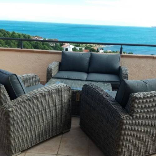 Llançà, EspañaFane de Baix a 5 km de El Port de la Selva: Complejo vacacional "Palmiers I". A 2 km del centro de Llançà, a 50 m del mar. Comunitario: terreno 6'000 m2 con plantas y árboles, piscina (17 x 7 m, Disponible por temporada: 03.May. - 30.Sep.) con sistema de limpieza por electrolysis de sal. Tenis, parque infantil (columpio), aparcamiento a 100 m. Centro comercial 2 km, restaurante 2 km, playa de arena 2 km playa de gravilla, cala para bañarse 400 m. Campo de golf 17 km. A tener en cuenta: Se pueden reservar alojamientos adicionales. Parking para bicicleta cubierto. Tenis 1h al día gratis de 9h a 18h. Apartamento de 2 estancias 45 m2 en el 2° piso. Con mobiliario funcional y moderno: salón-comedor con 1 sofá-cama doble (1 x 130 cm, 190 cm de longitud), TV digital, canales internacionales, pantalla plana, aire acondicionado y bomba de calor, caliente. 1 dorm. con 1 cama de matrimonio (150 cm). Cocina abierta (2 placas de vitrocerámica, microondas, cafetera eléctrica). Baño/WC. Terraza 12 m2. Muebles de terraza. Vista muy bonita al mar, a las montañas, a la piscina y al jardín. El alojamiento dispone de: lavadora, caja fuerte, plancha, secador de pelo. Internet (Wifi). Plaza de aparcamiento (cubierto). Wifi gratis limitado a 2 dispositivos. Acceso a terraza solarium (162 m2). Aire acondicionado con bomba de calor únicamente en el salón comedor. Toldo eléctrico. HUTG001452