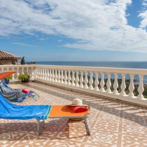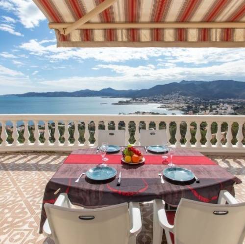 Llançà, EspañaGrifeu-Cap Ras: Casa de dos viviendas "Bellavista", agradable, confortable. Por encima Carretera Llança - Portbou, en las afueras de la localidad, a 1.5 km del centro de Llançà, lugar tranquilo, soleado, elevado area residencial (villas), a 500 m del mar, a 500 m de la playa, en una calle sin salida. Privado: terraza (60 m2), barbacoa, aparcamiento junto a la casa. Tienda 1.5 km, supermercado 1.7 km, restaurante 1.5 km, panadería 1.5 km, estación de tren "Llançà" 2 km, playa de arena "Grifeu" 700 m, playa de piedras "Cap Ras", cala para bañarse 500 m. Puerto deportivo 1.5 km, campo de golf (18 hoyos) 17 km, escuela de surf 1.5 km. Atracciones en los alrededores: Cadaqués 16 km, Museo Dalí Figueres 20 km, Aquabrava parc Roses 18 km, Casino, Golf Peralada 17 km. Zona de senderismo Parque natural del Cap de Creus, Serra de Rodes. A tener en cuenta: coche recomendable. El propietario no acepta grupos de adolescentes/jóvenes. "Bellavista", casa 3 estancias 95 m2. Luminoso, con mobiliario funcional y agradable: salón-comedor con TV satélite (pantalla plana). Salida a la terraza. 1 dorm. con 1 cama de matrimonio (1 x 140 cm), ventilador. Salida a la terraza. 1 dorm. con 1 cama de matrimonio (1 x 140 cm), ventilador. Cocina (4 fogones, horno, tostadora, microondas, cafetera eléctrica). Salida a la terraza. Baño, ducha/WC. Ningún tipo de calefacción. Terraza grande 60 m2. Muebles de terraza, barbacoa. Vista panorámica espléndida al mar, a las montañas, al paisaje y a la localidad. El alojamiento dispone de: lavadora. Plaza de aparcamiento junto a la casa. A tener en cuenta: TV solamente FR. R000000001
