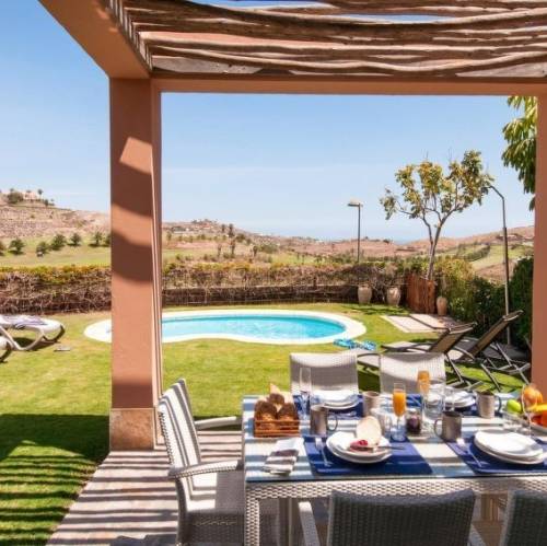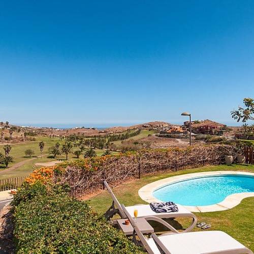 Maspalomas, EspañaVilla, bonita, moderna "Vista Golf 22". Equipamiento de la vivienda: aire acondicionado, solarium, lavadora (privado). Parking: parking al lado de la vivienda. Acceso en coche todo el año. Situación: en el centro de Salobre Golf, en las afueras de Maspalomas, lugar aislado, tranquilo, soleado en una colina. Vista desde la vivienda a las montañas. Entorno de la vivienda: jardín (privado, vallado), piscina (privado, longitud 5 m x ancho 2 m). Calefacción de la piscina (extra) 30.00 al día a pagar al llegar. Es obligatorio solicitarla en el momento de la reserva. "Vista Golf 22", casa independiente, 3 piezas para 4 personas, 105 m2 en 2 plantas, con mobiliario confortable y moderno. Salón-comedor con TV satélite y TV cable. Fumar no permitido. Internet (Wifi). Dormitorio con 1 cama de matrimonio. Dormitorio con 2 camas individuales. Cocina con 3 quemadores, microondas, horno, mesa de comedor, lavavajillas, frigorifico y congelador. Comida: servicio a domicilio de panecillos (incluido). Ducha/WC y bidet. Balcón, terraza, terraza-jardín, muebles de terraza, 4 tumbonas. Otros equipamientos: caja fuerte, trona, secador de pelo, plancha, lavadora. 2022-T10125