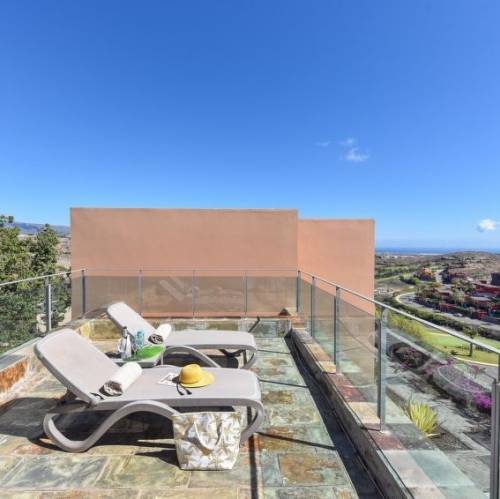 Maspalomas, EspañaCasa adosada, moderna, confortable "Meloneras Hills 16". Equipamiento de la vivienda: aire acondicionado, lavadora (privado). Parking: garaje individual. Acceso en coche todo el año. Acceso por escaleras. Situación: en la periferia de Maspalomas, en el barrio de Meloneras, lugar tranquilo, soleado. Vista desde la vivienda al jardín y al paisaje. Entorno de la vivienda: jardín (privado, vallado), piscina (privado, climatizada), ducha exterior (privado), barbacoa (privado). Infraestructura y distancias: tienda 850 m, tienda de comestibles 850 m, supermercado 850 m, restaurante 850 m, playa de arena 1 km, campo de golf 2.5 km, parada de autobús 1 km. A tener en cuenta, en las proximidades hay un aeropuerto a 36 km. Piscina climatizada por cargo extra (50 €), a solicitar en el momento de hacer la reserva y a pagar en plaza. Las llegadas en los siguientes horarios deberán abonar un coste extra en plaza: 20:30-22:00: 30€, 22:00-00:00: 50€, 00:00-01:30: 80€. Casa 5 piezas para 8 personas, 280 m2 en 3 plantas, con mobiliario confortable y moderno. Salón con TV satélite, DVD y cadena de sonido. Fumar no permitido. Internet (Wifi). Dormitorio con 1 cama de matrimonio. Dormitorio con 2 camas individuales. Dormitorio con 2 camas individuales. Dormitorio con 2 camas individuales. Cocina con 3 quemadores, microondas, horno, mesa de comedor, lavavajillas, frigorifico y congelador. Baño, baño/WC, ducha, ducha/WC y bidet. Terraza-jardín, muebles de terraza, 4 tumbonas. Otros equipamientos: caja fuerte, trona, secador de pelo, plancha, lavadora. No se permite fumar dentro de la casa. La sauna existente NO es para el uso de los señores clientes. Wi-Fi (extra: 6 euros / día), a pagar en plaza. 2020-T1383