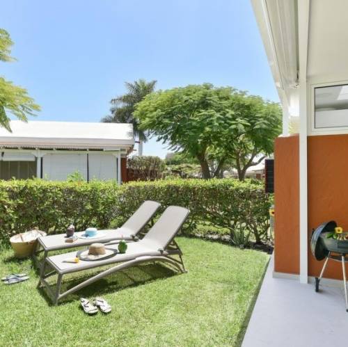 Maspalomas, EspañaCasa de dos viviendas "Cozy Bungalow Playa Flor Maspalomas", pequeña, bonita. En el barrio de Campo Internacional, en el centro de Maspalomas, lugar animado, tranquilo. Comunitario: piscina (Disponible por temporada: 01.Ene. - 31.Dic.). Privado: jardín (vallado) con césped. Muebles de jardín, barbacoa. En el inmueble: solarium. Posibilidad de aparcamiento en la calle. El propietario no acepta grupos de adolescentes/jóvenes. Vecindario muy sensible a ruidos. Se ruega respetar la tranquilidad y normas de buen comportamiento. "Playa Flor", casa 2 estancias 45 m2. Con mobiliario sencillo y confortable: salón con TV satélite, TV digital y aire acondicionado. Salida a la terraza-jardín. 1 dorm. con 1 cama de matrimonio. Cocina (2 placas de vitrocerámica, tostadora, hervidor de agua eléctrico, microondas, congelador, cafetera eléctrica). Ducha/WC. Terraza-jardín. Muebles de terraza, barbacoa, tumbonas. El alojamiento dispone de: lavadora, secadora, caja fuerte, plancha, trona, cuna hasta 2 años, secador de pelo. Internet (Wifi, gratis). A tener en cuenta: casa para no fumadores. Permitido máximo 1 mascota / perro. 2021-T2195