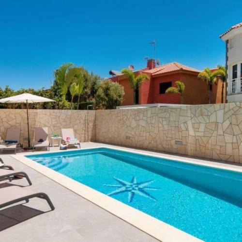 Maspalomas, EspañaCasa unifamiliar amplia, confortable. En la periferia Maspalomas, lugar tranquilo. Privado: jardín (vallado) con césped, piscina rectangular (11 x 5 m, 160 - 140 cm de profundidad, Disponible por temporada: 01.Ene. - 31.Dic.). Ducha exterior, terraza-jardín, muebles de jardín, barbacoa. En el inmueble: billar. Garaje individual, posibilidad de aparcamiento en la calle. El propietario no acepta grupos de adolescentes/jóvenes. Vecindario muy sensible a ruidos. Se ruega respetar la tranquilidad y normas de buen comportamiento. "10 PAX", casa 6 estancias 634 m2 en 3 plantas. Con mobiliario confortable y moderno: salón-comedor con mesa de comedor, TV satélite y TV digital. Cocina (horno, lavavajillas, 4 placas de vitrocerámica, tostadora, hervidor de agua eléctrico, microondas, congelador, cafetera eléctrica) con mesa de comedor. WC separado. En planta inferior: 1 dorm. con 2 camas y baño/WC. Salida a la terraza, a la piscina. 1 dorm. con 2 camas y baño/WC. Salón con TV digital. Planta superior: 1 dorm. con 1 cama de matrimonio, ducha/WC y ducha hidromasaje. 2 dorm., cada habitación con 1 cama de matrimonio y ducha/bidet/WC. 1 dorm. con 1 cama de matrimonio y ducha/WC. Terraza-jardín. Muebles de terraza, barbacoa, tumbonas. Al mar y a las montañas. El alojamiento dispone de: lavadora, secadora, caja fuerte, plancha, trona, cuna hasta 2 años, secador de pelo. Internet (Wifi, gratis). Garaje (1 coche). A tener en cuenta: casa para no fumadores. Permitido máximo 1 mascota / perro. 2016/2722