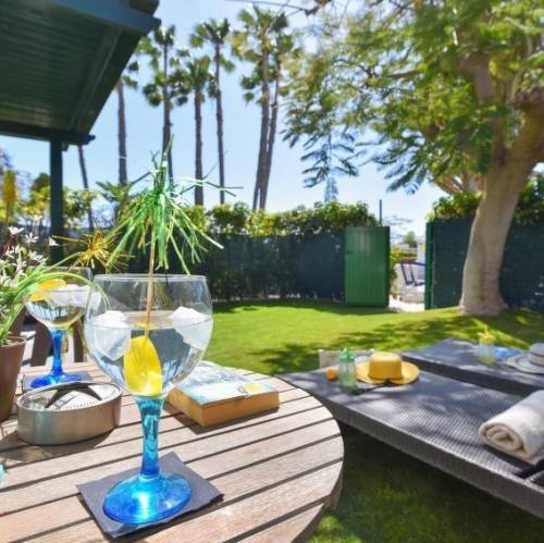 Maspalomas, EspañaCasa de dos viviendas "Cozy Bungalow Playa Flor Maspalomas", pequeña, bonita. En el barrio de Campo Internacional, en el centro de Maspalomas, lugar animado, tranquilo. Comunitario: piscina (Disponible por temporada: 01.Ene. - 31.Dic.). Privado: jardín (vallado) con césped. Muebles de jardín, barbacoa. En el inmueble: solarium. Posibilidad de aparcamiento en la calle. El propietario no acepta grupos de adolescentes/jóvenes. Vecindario muy sensible a ruidos. Se ruega respetar la tranquilidad y normas de buen comportamiento. "Playa Flor", casa 2 estancias 45 m2. Con mobiliario sencillo y confortable: salón con TV satélite, TV digital y aire acondicionado. Salida a la terraza-jardín. 1 dorm. con 1 cama de matrimonio. Cocina (2 placas de vitrocerámica, tostadora, hervidor de agua eléctrico, microondas, congelador, cafetera eléctrica). Ducha/WC. Terraza-jardín. Muebles de terraza, barbacoa, tumbonas. El alojamiento dispone de: lavadora, secadora, caja fuerte, plancha, trona, cuna hasta 2 años, secador de pelo. Internet (Wifi, gratis). A tener en cuenta: casa para no fumadores. Permitido máximo 1 mascota / perro. 2021-T2195
