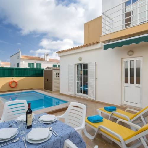 Pêra, PortugalA 3 km de Centro Armação de Pera: Casa adosada "Sunny Home", bonita, agradable de 2 plantas del año 2003. En las afueras de la localidad, a 500 m del centro de Pera, lugar tranquilo area residencial (villas), a 3 km del mar. Privado: terreno 172 m2 (vallada), patio, piscina rectangular (3 x 3 m, 115 - 115 cm de profundidad, Disponible por temporada: 01.Ene. - 31.Dic.). Barbacoa. En el inmueble: Wifi, lavadora. Cambio de sábanas (suplemento extra). Cambio de toallas (suplemento extra). Posibilidad de limpieza (extra). Transfer desde el aeropuerto (extra). Aparcamiento junto a la casa. Tienda 400 m, tienda de comestibles 600 m, supermercado 2.4 km, restaurante, bar 500 m, panadería 2.4 km, café 170 m, internet café 4.9 km, bar al aire libre 4.9 km, playa de arena "Praia dos Pescadores" 3 km. Puerto deportivo 8.3 km, campo de golf (18 hoyos) 3.9 km, escuela de surf 5.4 km, centro ecuestre 2.6 km. Atracciones en los alrededores: Zoomarine 2.8 km, Albueira 13.8 km, Algarve Shopping 5.9 km, Aqualand 3.7 km, Golf Course Salgados 3.8 km, Praia Galé Oeste 5.1 km. Lagos conocidos fácilmente accesibles: Lagoa Dos Salgados 3.7 km. Zona de senderismo Monchique. A tener en cuenta: coche recomendable. Adecuado para familias. Grupos de jóvenes sólo bajo petición. Bajo petición: transfer desde el aeropuerto a la vivienda de vacaciones. Carga y descarga de equipaje posible en la casa de vacaciones. Vecindario muy sensible a ruidos. Se ruega respetar la tranquilidad y normas de buen comportamiento. "Sunny Home", casa adosada 4 estancias 136 m2 en 2 plantas. Con mobiliario muy funcional: salón-comedor con 1 sofá-cama doble, chimenea, mesa de comedor, TV, canales internacionales, pantalla plana y aire acondicionado. 1 dorm. con 2 camas (90 cm, 190 cm de longitud), aire acondicionado. Cocina (4 fogones, horno, lavavajillas, microondas, congelador, cafetera eléctrica). Salida al balcón. Ducha/WC. Planta superior: 1 dorm. con 1 cama de matrimonio y aire acondicionado. 1 dorm. con 2 camas (90 cm, 190 cm de longitud), aire acondicionado. Baño/ducha/WC. Muebles de terraza, barbacoa, tumbonas (2). El alojamiento dispone de: lavadora, plancha. Internet (Wifi). Plaza de aparcamiento. Adecuado para familias. 71938/AL
