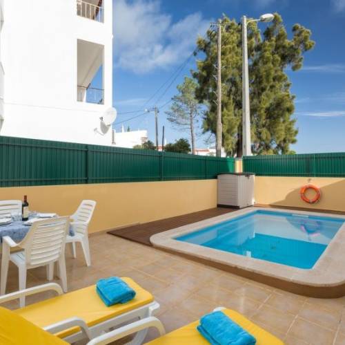 Galé, PortugalGalé: Casa adosada "Joia", muy agradable, confortable de 2 plantas, adosada por un lado. Lugar animado, area residencial (villas), a 750 m del mar. Comunitario: piscina rectangular (15 x 5 m, 140 - 300 cm de profundidad, Disponible por temporada: 01.Ene. - 31.Dic.). Piscina para niños. En el inmueble: Wifi, aire acondicionado, lavadora. Aparcamiento junto a la casa. Tienda 1.1 km, tienda de comestibles 1.5 km, supermercado 1 km, restaurante 130 m, bar 400 m, panadería 1.2 km, café 1.2 km, alquiler de bicicletas 8.9 km, parada de autobús 6.7 km, playa de arena "Praia da Maré das Porcas" 750 m. Puerto para yates 3.7 km, campo de golf (18 hoyos) 3.6 km, escuela de surf 1.6 km, tenis 6.7 km, minigolf 7.5 km, centro ecuestre 4.6 km, parque infantil 4.6 km. Atracciones en los alrededores: Zoomarine 8.3 km, Algarve Shopping 8 km, Aqualand 10.6 km, Fiesa 20.4 km, Albufeira 6.7 km, Krazy World 14.6 km. Lagos conocidos fácilmente accesibles: Lagoa dos Salgados 3.9 km. Zona de senderismo Passadiço para a praia da Galé, Monchique 47.7 km. A tener en cuenta: coche recomendable. Adecuado para familias. "Joia", casa adosada 3 estancias 94 m2 en 2 plantas. Espacioso y luminoso, con mobiliario muy funcional y agradable: sala de estar con 1 sofá-cama, mesa de comedor, TV, canales internacionales, pantalla plana, aire acondicionado y bomba de calor, caliente. Salida a la terraza, a la piscina. Cocina (horno, lavavajillas, 4 placas de vitrocerámica, tostadora, hervidor de agua eléctrico, microondas, congelador, cafetera eléctrica, Cápsulas de café (Dolce Gusto not incl)). Ducha/WC. Planta superior: 1 dorm. con 2 camas (90 cm, 200 cm de longitud), aire acondicionado y bomba de calor, caliente. 1 dorm. con 1 cama de matrimonio (180 cm, 200 cm de longitud), aire acondicionado y bomba de calor, caliente. Media bañera/WC. Muebles de terraza. Vista a la piscina. El alojamiento dispone de: lavadora, plancha, trona, cuna, secador de pelo. Internet (Wifi). Plaza de aparcamiento junto a la casa. Adecuado para familias. 126051/AL