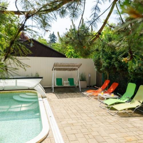 Balatonkenese, HungríaBalatonkenese: Casa semiadosada agradable de 2 plantas. En la localidad, lugar tranquilo, a 1 km de un lago. Privado: jardín (vallado), piscina rectangular (6 x 3 m, 18 m2, 90 cm de profundidad, Disponible por temporada: 01.May. - 15.Sep.) con sistema de cobertura. Ducha exterior, muebles de jardín, barbacoa. En el inmueble: Wifi, aire acondicionado (extra). Tienda de comestibles 1 km, restaurante 800 m. "Violetta", casa pareada 4 estancias 80 m2. Con mobiliario agradable: salón con TV cable. Cocina abierta (4 fogones, lavavajillas, tostadora, microondas, cafetera eléctrica). Baño/WC. Aire acondicionado (extra). Ningún tipo de calefacción. Planta superior: entrada con 1 cama. 1 dorm. con 2 camas. 1 dorm. con 1 cama, 1 cama de matrimonio y TV cable. Salida al balcón. Baño/WC. Terraza cubierta. Muebles de terraza, tumbonas. El alojamiento dispone de: lavadora. Plaza de aparcamiento (cubierto, vallada). MA20017757
