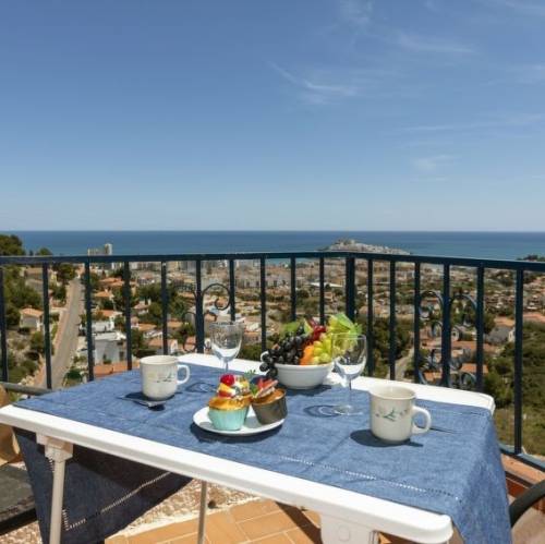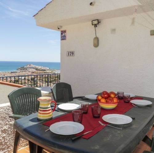 Peñíscola, EspañaAtalayas a 2 km de Centro Peñiscola: Casa de apartamentos "El Mirador de Grecia", agradable. 4 casas en la residencia. A 2 km del mar. Acceso empinado. Acceso por escaleras (24 escalones) hasta la casa. Tienda 2 km, tienda de comestibles 2 km, supermercado 2 km, restaurante 850 m, panadería 2 km, café, bar al aire libre 850 m. Puerto deportivo 2 km, campo de golf (18 hoyos) 30 km. Atracciones en los alrededores: Laberinto mas grande de España 6 km, Golf Panormaica 30 km, Delta del Ebro 50 km, Museo de Arte y Ciencias Valencia 180 km. Zona de senderismo Sierra de Irta 9 km. A tener en cuenta: coche recomendable, sin ascensor. Grupos de jóvenes sólo bajo petición. Vecindario muy sensible a ruidos. Se ruega respetar la tranquilidad y normas de buen comportamiento. "El Mirador de Grecia", apartamento de 4 estancias 70 m2. Parcialmente reformado en 2013, con mobiliario funcional: salón-comedor con ventanal con mesa de comedor, TV digital, aire acondicionado y bomba de calor, caliente. Salida a la terraza. 1 dorm. con 2 camas (90 cm, 190 cm de longitud), calefacción eléctrica. 1 dorm. con 2 camas (90 cm, 190 cm de longitud), calefacción eléctrica y ventilador. 1 dorm. con 1 cama de matrimonio (1 x 135 cm, 190 cm de longitud), calefacción eléctrica. Cocina abierta (4 fuegos, tostadora, hervidor de agua eléctrico, microondas, congelador, cafetera eléctrica, Cápsulas de café (NESPRESSO) extra) con aire acondicionado. Baño/WC, baño/ducha/WC. Calefacción eléctrica, calentador (70 litros). Terraza grande. Muebles de terraza, barbacoa (portátil). Vista panorámica muy bonita al mar, a las montañas y a la localidad. El alojamiento dispone de: lavadora, plancha, secador de pelo. Internet (Wifi, gratis). A tener en cuenta: apartamento para no fumadores. TV solamente ES. Sin ascensor. VT-42575-CS