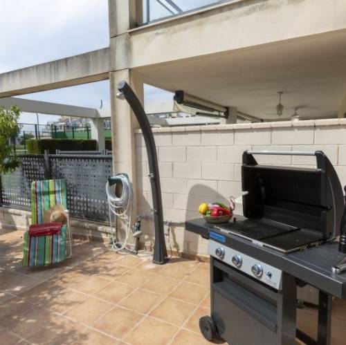 Guardamar del Segura, EspañaGuardamar del Segura: Casa de apartamentos "Residencial del Pinar", confortable de 2 plantas. En las afueras de la localidad, a 1 km del centro de Guardamar del Segura, a 200 m del mar, a 300 m de la playa. Comunitario: piscina en forma de riñon vallada (Disponible por temporada: 15.Jun. - 15.Sep.). Ducha/WC en zona de piscina, piscina para niños, ducha exterior, tenis, parque infantil (tobogán, columpio). En el inmueble: lavadora. Acceso por escaleras (37 escalones) hasta la casa. Posibilidad de aparcamiento en la calle. Tienda de comestibles 50 m, centro comercial 500 m, restaurante, bar, playa de arena 200 m. "Residencial El Pinar", apartamento en dos niveles 4 estancias 75 m2 en 2 plantas. Luminoso, con mobiliario funcional y confortable: salón-comedor con 1 sofá-cama, TV digital, pantalla plana, radio, CD, DVD, aire acondicionado y bomba de calor, caliente. 1 dorm. con 2 camas. Cocina abierta (horno, lavavajillas, 4 placas de vitrocerámica, microondas, congelador) con barra americana. Ducha/WC. Planta superior: 1 dorm. con 1 cama de matrimonio, aire acondicionado y bomba de calor, caliente. 1 dorm. con 2 camas. Baño/bidet/WC. Terraza grande 10 m2. Vista parcial al valle. El alojamiento dispone de: lavadora, plancha. A tener en cuenta: adecuado para familias. 1 mascota / perro. Sin ascensor. AT-438862-A