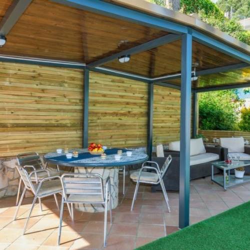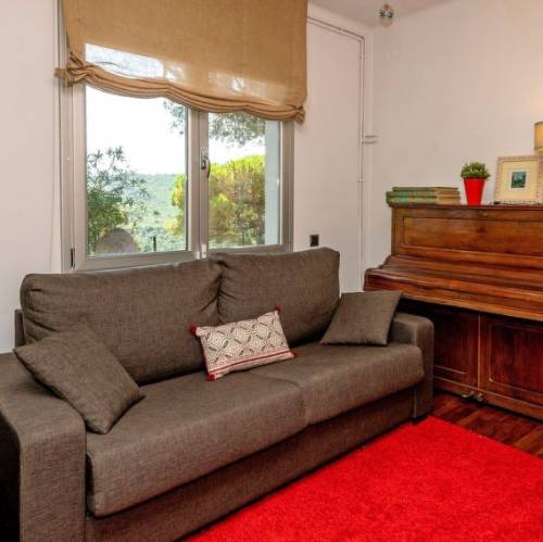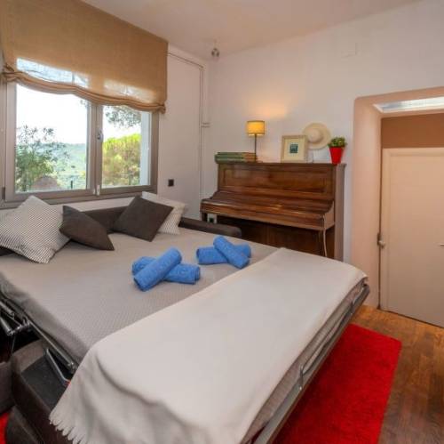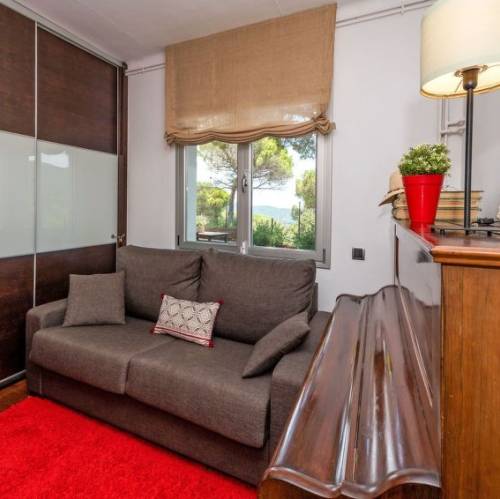 Argentona, EspañaCasa "Ginesteres", moderna, bonita. En las afueras de la localidad, a 3 km del centro de Argentona, lugar tranquilo en una pendiente, a 7 km del mar, a 7 km de la playa. Privado: terreno (vallada), jardín en diferentes niveles, jardín natural, piscina en forma de riñon (12 x 4 m, 100 - 250 cm de profundidad, Disponible por temporada: 01.Jun. - 30.Oct.). Acceso por escaleras (14 escalones) hasta la casa. Atracciones en los alrededores: Barcelona 34 km, Serralada del Litoral, La Roca Village 11 km, Costa Brava 46 km, Aquapark 9 km. Zona de senderismo Serralada del Litoral 200 m. A tener en cuenta: coche recomendable. El propietario no acepta grupos de adolescentes/jóvenes. Vecindario muy sensible a ruidos. Se ruega respetar la tranquilidad y normas de buen comportamiento. En el nivel inferior de la parcela existe una pequeña vivienda que se utiliza con entrada privada y la vivienda principal queda en el nivel superior del terreno sin vista a la casa. Casa 3 estancias 180 m2. Espacioso y luminoso, con mobiliario de buen gusto y agradable: salón-comedor grande con chimenea y TV. Salida a la terraza. 1 dorm. con 1 cama y 1 x 2 literas. Habitación de paso, abierto con 1 sofá-cama doble. Cocina (horno, lavavajillas, 4 placas de vitrocerámica, microondas, congelador, cafetera eléctrica) con mesa de comedor. Ducha/WC. Calefacción. En planta inferior: 1 dorm. con 1 cama de matrimonio y baño/WC. Muebles de terraza, barbacoa, tumbonas (4), porche. Vista espléndida al mar, a las montañas y al paisaje. El alojamiento dispone de: lavadora, plancha, secador de pelo. Internet (Wifi, gratis). A tener en cuenta: adecuado para familias. Casa para no fumadores. HUTB015874