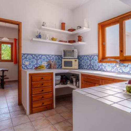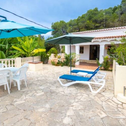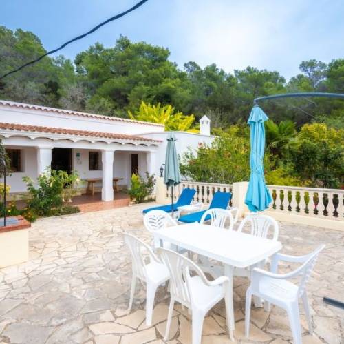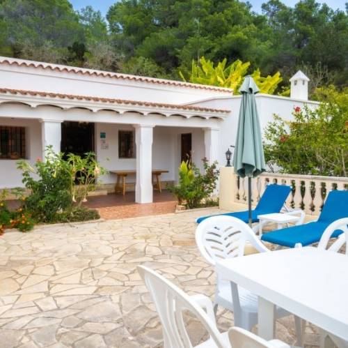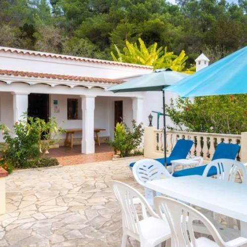 San Carlos, España. Acceso a la casa por 3 escalones. Dos terrazas están cubiertas. Puerta de entrada al jardín con mando a distancia. Finca "Can Pep Jaume", agradable del año 2004. En las afueras de la localidad, a 3 km del centro de St. Carles, lugar tranquilo, soleado, elevado, a 600 m del mar, en una calle. Privado: terreno 6'000 m2 (vallada), piscina rectangular (8 x 3 m, 190 cm de profundidad, Disponible por temporada: 01.May. - 30.Oct.). Ducha/WC en zona de piscina, porche (24 m2), terraza (90 m2), muebles de jardín, barbacoa. En el inmueble: acceso a internet, Wifi, aire acondicionado, lavadora. Acceso empinado. Aparcamiento (para 4 coches) junto a la casa en el mismo terreno. Tienda de comestibles 600 m, restaurante 400 m, parada de autobús 300 m, playa de arena 900 m, playa rocosa 500 m. Campo de golf 15 km, tenis 500 m. Atracciones en los alrededores: Cala Mastella 900 m, Cala Llenya 1 km, Cala Nova 2 km. A tener en cuenta: coche recomendable. Villa 4 estancias 170 m2. Con mobiliario confortable: salón-comedor grande con chimenea, mesa de comedor, TV satélite y TV digital. Salida a la terraza-jardín. 1 dorm. doble con 1 cama doble (2 x 90 cm, 190 cm de longitud), ducha/bidet/WC, aire acondicionado y bomba de calor, caliente. 1 dorm. con 2 camas (90 cm, 190 cm de longitud), ducha/WC, aire acondicionado y bomba de calor, caliente. 1 dorm. con 1 cama de matrimonio (200 cm, 200 cm de longitud), ducha/WC y aire acondicionado. Cocina (horno, lavavajillas, tostadora, hervidor de agua eléctrico, microondas, congelador, cafetera eléctrica) con mesa de comedor, pasa-platos. Salida a la terraza. Ducha/bidet/WC. Terraza 90 m2, cenador 24 m2. Muebles de terraza, barbacoa, tumbonas (6). Vista lejana al mar. El alojamiento dispone de: lavadora, plancha. Internet (Wifi, gratis). Plaza de aparcamiento (vallada, 4 Coches). 20434