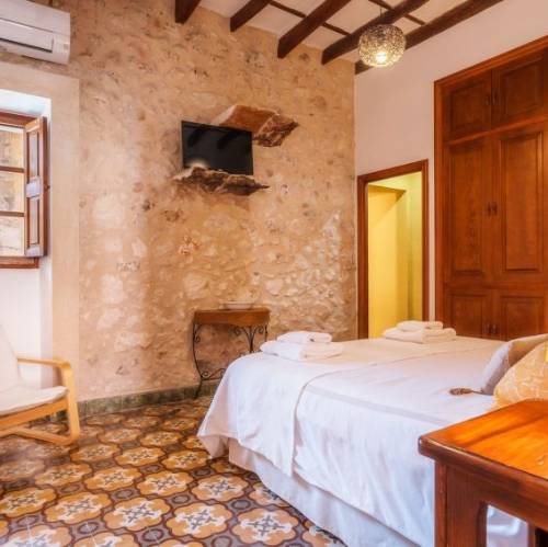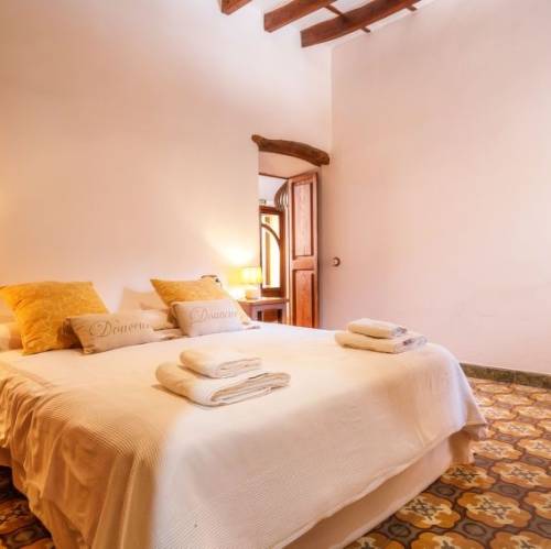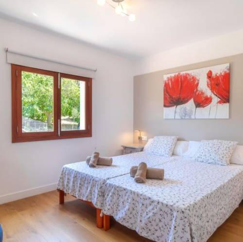 Sencelles, EspañaSencelles: Casa "Can Xerret", bonita, rústica, histórica de 2 plantas del año 1900, reformada. En la localidad, a 300 m del centro, excelente situación: muy céntrica pero tranquila, a 1.5 km de un bosque, a 30 km del mar. Privado: piscina rectangular (5 x 2 m, 135 - 135 cm de profundidad, Disponible por temporada: 01.Ene. - 31.Dic.). Ducha exterior, terraza-jardín, cenador, porche, muebles de jardín, barbacoa, mantenimiento de la piscina a través del propietario/jardinero. En el inmueble: sala para guardar bicicleta. Parking público a 100 m. Tienda de comestibles 300 m, restaurante 50 m, bar, panadería, bar al aire libre 300 m, a 4 minutos del centro andando, parada de autobús 300 m, playa de arena "Playas de Muro - Can Picafort" 31 km. Puerto deportivo 32 km, puerto para yates 32 km, campo de golf (18 hoyos) 30 m, tenis 450 m, centro ecuestre 5 km, polideportivo 450 m, rutas de senderismo desde la casa, caminos para bicicletas 800 m. Atracciones en los alrededores: Restaurante Sa Cuina de n'Aina 50 m, Ca s'Arquitecte Restaurante 500 m, Ruta Arqueológica Sencelles Costitx, Estatua de la Beata, Biniali - Jornets - Ruberts. Zona de senderismo Serra de Tramuntana, https://www.visitsencelles.com/es/rutas/. A tener en cuenta: coche recomendable. Adecuado para familias. Vivienda adecuada para 6 adultos. El propietario no acepta grupos de adolescentes/jóvenes. Aeropuerto 50 km de la casa. Vecindario muy sensible a ruidos. Se ruega respetar la tranquilidad y normas de buen comportamiento. "Can Xerret", casa 4 estancias 140 m2 en 2 plantas. Vivienda adecuada para 6 adultos. Con mobiliario confortable y agradable: salón con chimenea (sólo con función decorativa), TV digital y pantalla plana. Comedor con mesa de comedor. Salida a la terraza, a la piscina. Cocina (horno, lavavajillas, 2 placas de vitrocerámica, tostadora, hervidor de agua eléctrico, microondas, congelador, cafetera eléctrica). Salida a la terraza, a la piscina. Ducha/WC. Ningún tipo de calefacción. Planta superior: 1 dorm. doble con 1 cama de matrimonio (135 cm, 200 cm de longitud), ventilador. Salida al balcón. 2 dorm. dobles, cada habitación con 2 camas (90 cm, 200 cm de longitud), ventilador. Baño/bidet/WC. Suelo de piedra natural. Terraza-jardín. Muebles de terraza, barbacoa, tumbonas (6), porche, trastero. Vista a las montañas y a la localidad. El alojamiento dispone de: lavadora, plancha, trona, cuna hasta 2 años, secador de pelo. Internet (Wifi, gratis). A tener en cuenta: extintores. ETV6490