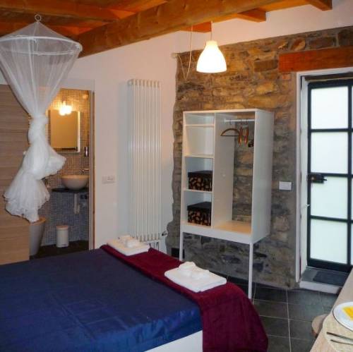 Triora, ItaliaCasa de dos viviendas "Grande Foresta", muy rústica de 3 plantas, reformada en 2020. Alojamiento compuesto de edificio principal y edificio anexo, en el centro de Triora, a 30 km del centro de Arma di Taggia, a 35 km del centro de Sanremo, a 40 km del centro de Ospedaletti, lugar céntrico en una pendiente, a 35 km del mar, a 6 km del río. Privado: terreno con flores y árboles, jardín natural 300 m2, Piscina elevada redonda (3 m diámetro, 60 - 70 cm de profundidad, Disponible por temporada: 15.Jun. y 31.Ago.). 120 m camino peatonal hasta la casa. Posibilidad de aparcamiento 100 m en la calle. Tienda de comestibles 200 m, supermercado 20 km, panadería, café 200 m, parada de autobús 150 m, playa de arena "Arma di Taggia" 35 km. Atracciones en los alrededores: museo delle Streghe 200 m, laghetto Noci 6 km. El propietario vive en una parte independiente de la casa. Casa pareada 4 estancias 140 m2 en 2 plantas. Con mobiliario funcional y rústico: 1 dorm. doble. 1 dorm. doble con ducha/bidet/WC. Salida al jardín. Cocina-comedor (horno pequeño, horno, 3 fuegos, hervidor de agua eléctrico, microondas). Salida al balcón. Ducha/bidet/WC. Calefacción de gas, calefacción de leña. Planta superior: 1 dorm. doble con 1 cama (160 cm, 200 cm de longitud), 2 sofás-cama (90 cm, 200 cm de longitud), chiminea nórdica, ducha/bidet/WC, TV y calefacción eléctrica. Salida al balcón. Barbacoa, tumbonas. Vista panorámica muy bonita al paisaje. El alojamiento dispone de: secador de pelo. Internet (Wifi, gratis). A tener en cuenta: 1 mascota / perro. Entrada privada. CITRA:008061-BEB-002