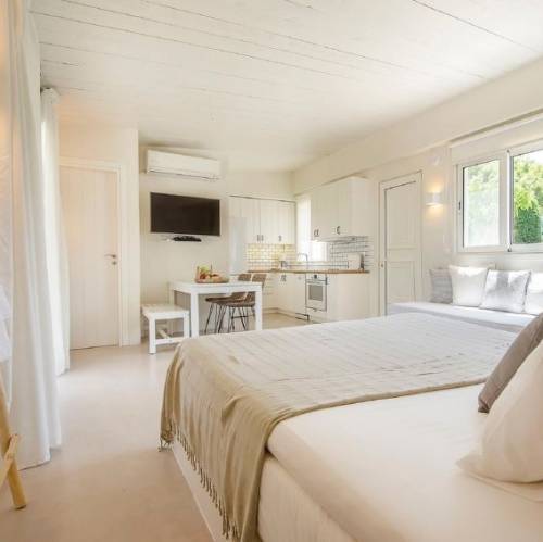 Kos, GreciaVilla "Lefko Spitaki", muy pequeña, moderna, agradable, reformada en 2018, rodeada de árboles. 5 casas en el complejo. En el barrio de Lambi, a 1 km del mar, a 1 km de la playa, a 13 km del canal. Comunitario: jardín grande con flores y árboles. Porche. En el inmueble: recepción con TV, acceso a internet. Cambio de sábanas 3 vez por semana. Cambio de toallas 3 veces por semana. Limpieza diaria. Aparcamiento (para 10 coches). Tienda 1 km, supermercado 2 km, centro comercial 13 km, restaurante 1 km, bar 2 km, panadería 2 km, café 1 km, internet café 13 km, alquiler de bicicletas 1.5 km, parada de autobús 1.5 km, ferry 13 km, playa de arena 1 km, piscina 1.5 km, piscina termal 15 km. Puerto deportivo 13 km, tenis 20 m. Atracciones en los alrededores: Asklipion 15 km. A tener en cuenta: horario de recepción de 08:00-20:00 horas. "Lefko Spitaki", villa estudio en la planta baja. Vivienda adecuada para 2 adultos. Completamente reformada en 2018, con mobiliario bonito y agradable: salón-dormitorio abierto con 1 cama doble, ducha/WC y TV satélite (pantalla plana), CD, DVD y aire acondicionado. Salida al jardín. Cocina (horno, lavavajillas, congelador) con mesa de comedor. Muebles de terraza, rincón para sentarse. Vista muy bonita al jardín. El alojamiento dispone de: Internet (Wifi, gratis). 1471K91000413601