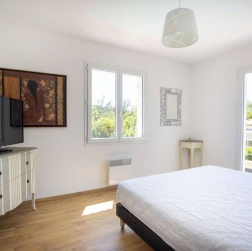 La Croix-Valmer, FranciaCasa unifamiliar "Villa Aestas", moderna, bonita. En las afueras de la localidad, a 2 km del centro de La Croix Valmer, lugar tranquilo en un barrio residencial, a 2.1 km del mar, a 2.1 km de la playa, orientación sur. Privado: terreno 900 m2, piscina rectangular (4 x 8 m, 110 - 200 cm de profundidad, Disponible por temporada: 06.Abr. - 02.Nov.) con alarma. Ducha exterior, casita de piscina con nevera, petanca. En el inmueble: futbolín. Aparcamiento en el mismo terreno. Tienda 800 m, tienda de comestibles, supermercado 300 m, centro comercial 7.8 km, restaurante 700 m, bar 800 m, panadería 300 m, playa de arena "Le Nautic Beach" 2.1 km, parque "Aqualand" 18.6 km. Puerto deportivo 5.4 km, escuela de vela 5.4 km, tenis 1.6 km, minigolf 8.3 km. Atracciones en los alrededores: Azur Park, Paint-ball 8 km, Bowling à Port-Grimaud 10 km, St-Tropez 13 km, Ste-Maxime 17 km. Zona de senderismo Sentier du littoral 2300 km, Sentier du Fenouillet 7300 km, Toulon 68 km. A tener en cuenta: coche recomendable. La entrega de llaves se realiza por la agencia Interhome en Cavalaire, 5 km. Casa 4 estancias 120 m2. Reformada en 2019, con mobiliario confortable y bonito: sala de estar con ventanal con TV (pantalla plana). Salida a la terraza, a la piscina. Comedor con ventanal. Salida a la terraza, orientación norte y orientación sur. 1 dorm. con 1 cama (90 cm, 200 cm de longitud), 1 cama de matrimonio (160 cm, 200 cm de longitud). 1 dorm. con 1 cama de matrimonio (1 x 160 cm, 200 cm de longitud). Cocina abierta (horno, lavavajillas, 4 placas de vitrocerámica, tostadora, hervidor de agua eléctrico, microondas, cafetera eléctrica, Cápsulas de café (Nespresso) extra). Salida a la terraza. 2 duchas, 2 WC separados. Aire acondicionado, aire caliente. Terraza 20 m2, orientación sur terraza 10 m2, orientación norte, jardín grande 900 m2. Muebles de terraza, tumbonas (3). Vista a la piscina y al jardín. El alojamiento dispone de: lavadora, secadora, plancha, cuna hasta 2 años, secador de pelo. Internet (Wifi, gratis). Plaza de aparcamiento. A tener en cuenta: detector de humo. 83048000318WX