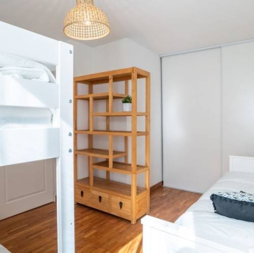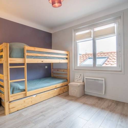 Angelu, FranciaANGLET a 4 km de Biarritz: Casa de tres viviendas "Querencia", confortable. En el barrio de Chambre d'Amour, en el centro de Anglet, lugar tranquilo en un barrio residencial, a 950 m del mar, a 950 m de la playa. Aparcamiento en el mismo terreno. Tienda de comestibles 1 km, restaurante 900 m, bar 950 m, panadería 1.3 km, parada de autobús 400 m, playa de arena "Les Corsaires" 900 m. Puerto deportivo 3 km, campo de golf (18 hoyos) 1 km, escuela de surf 950 m, tenis 2 km, centro ecuestre 750 m, caminos para bicicletas 400 m. Atracciones en los alrededores: Thalasso 2 km, Plages 900 m. Zona de senderismo La rhune 40 km. La entrega de llaves se realiza por la agencia Interhome en Biarritz, 5 km. Apartamento de 4 estancias 85 m2 en 2 plantas. Con mobiliario confortable y moderno: comedor. Salón con TV y pantalla plana. Salida orientación sur. 1 dorm. con 1 x 2 literas (90 cm, 190 cm de longitud). 1 dorm. con 1 cama de matrimonio (1 x 140 cm, 190 cm de longitud). 1 dorm. con 1 cama de matrimonio (1 x 140 cm, 190 cm de longitud). Salida al balcón. Cocina abierta (horno, lavavajillas, 4 placas de vitrocerámica, microondas, cafetera eléctrica, Cápsulas de café (Nespresso) extra). Baño/WC, doble lavabo. Calefacción eléctrica. En planta inferior: entrada con WC separado. Terraza grande 15 m2. Muebles de terraza, barbacoa. El alojamiento dispone de: lavadora, plancha, secador de pelo. Internet (Wifi, gratis). Plaza de aparcamiento (vallada). A tener en cuenta: 1 mascota / perro. Detector de humo. 6402400023163