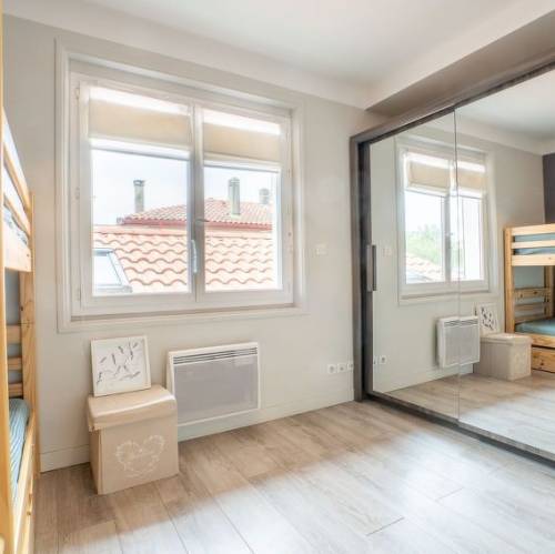 Bidarte, FranciaBidart: Residencia "Les Jardins d'Oihana". Lugar tranquilo en un barrio residencial, a 2 km del mar, a 2 km de la playa. Tienda 2 km, tienda de comestibles 2 km, supermercado 2 km, centro comercial 2 km, restaurante 2.4 km, bar 2 km, panadería 2 km, café 2 km, zona peatonal 2.4 km, a 23 minutos del centro andando, parada de autobús "Hiri Artea" 700 m, estación de tren "Biarritz" 5 km, playa de arena "Erretegia" 2 km. Puerto deportivo 4.3 km, campo de golf (9 hoyos) 3.4 km, escuela de surf 2.2 km. Atracciones en los alrededores: bid'a parc 3.2 km, aquarium 6.6 km. Zona de senderismo La Rhune 19.6 km. Apartamento de 3 estancias 60 m2 en el 1° piso. Vivienda adecuada para 2 adultos + 3 niños. Con mobiliario confortable: salón-comedor con TV (pantalla plana). Salida al balcón. 1 dorm. con 1 cama de matrimonio (160 cm, 200 cm de longitud). 1 dorm. con 3 camas (90 cm, 190 cm de longitud). Cocina abierta (horno, lavavajillas, 3 Placas de inducción, tostadora, hervidor de agua eléctrico, congelador, cafetera eléctrica, microondas/grill). Ducha, WC separado, doble lavabo. Calefacción eléctrica. Balcón 8 m2, orientación sur y orientación oeste. Muebles de balcón. El alojamiento dispone de: lavadora, secador de pelo. Internet (Wifi, extra). Plaza de aparcamiento n. 199 et 200 (2 Coches). A tener en cuenta: detector de humo, sin ascensor. 641250018103A