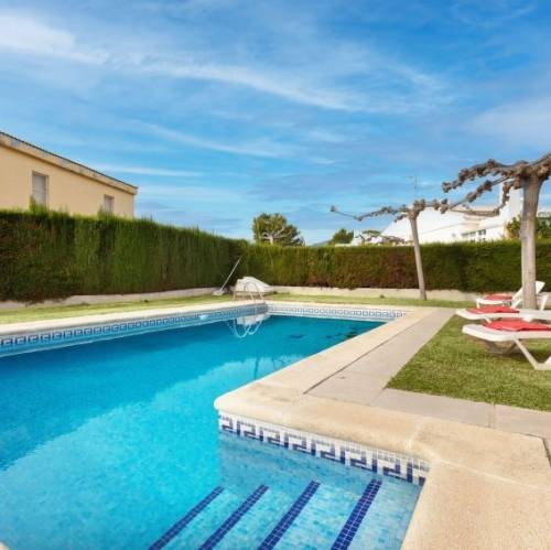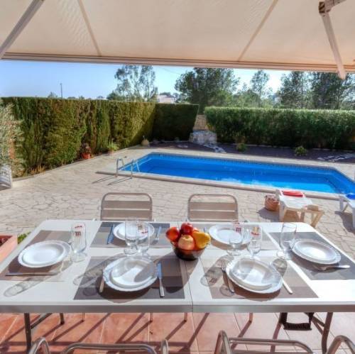 l'Ametlla de Mar, EspañaUrb. Les Tres Cales a 4 km de L'Ametlla de Mar: Villa "Mercedes", bonita, confortable. En el centro de Las 3 Calas, en las afueras de la localidad, lugar soleado, a 800 m del mar, a 800 m de la playa. Privado: terreno 1'100 m2 (vallada), jardín, piscina (4 x 8 m, 50 - 190 cm de profundidad, Disponible por temporada: 01.Ene. - 31.Dic.). Ducha exterior, terraza-jardín, barbacoa, mantenimiento de la piscina a través del propietario/jardinero. En el inmueble: solarium, lavadora. Aparcamiento junto a la casa. Tienda de comestibles 1.2 km, supermercado 1.2 km, restaurante 1.2 km, bar 1.2 km, estación de tren "L'Ametlla de Mar" 5 km. Atracciones en los alrededores: Parque Portaventura 48 km, parque Aquopolis 51 km, parque natura del Delta del Ebro 35 km, Tarragona 57 km, Reus 48 km, Barcelona 153 km. A tener en cuenta: coche recomendable. Grupos de jóvenes sólo bajo petición. "Villa Mercedes", villa 5 estancias 120 m2. Con mobiliario funcional y confortable: salón-comedor con mesa de comedor y TV digital. 3 dorm., cada habitación con 1 cama de matrimonio (150 cm). Rincón-dormitorio con 1 cama (120 cm), 1 sofá-cama. Cocina (horno, lavavajillas, 4 placas de vitrocerámica, tostadora, hervidor de agua eléctrico, microondas, cafetera eléctrica). Ducha/WC, ducha/bidet/WC. (75 litros). Ningún tipo de calefacción. Jardín. Muebles de terraza, barbacoa. El alojamiento dispone de: lavadora, plancha, trona, cuna hasta 2 años, secador de pelo. Internet (Wifi, gratis). Plaza de aparcamiento junto a la casa. 1 mascota / perro. HUTTE001495