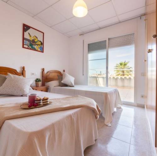 l'Ametlla de Mar, EspañaPasseig Maritim: Casa de apartamentos "Melania", agradable, confortable. En el centro de L'Ametlla de Mar, lugar soleado, a 50 m del mar, a 50 m de la playa. Posibilidad de aparcamiento en la calle. Supermercado 200 m, restaurante, bar, panadería 100 m, estación de tren 200 m, playa de arena "Platja Pixavaques" 50 m. Puerto deportivo, escuela de vela 800 m, tenis 500 m, minigolf 1.5 km, parque infantil 150 m. Atracciones en los alrededores: Parque Portaventura 50 km, parque acúatico Aquopolis 53 km, Parque Natural Del del ebro 50 km. A tener en cuenta: sin ascensor. Grupos de jóvenes sólo bajo petición. "Apartamento Melania", apartamento de 4 estancias 100 m2 en el 2° piso. Con mobiliario confortable y agradable: salón-comedor con mesa de comedor y TV digital. Salida al balcón. Habitación de paso con aire acondicionado. 1 dorm. con 1 cama de matrimonio (150 cm). Salida al balcón. 1 dorm. con 2 camas (90 cm). 1 dorm. con 1 cama (90 cm). Cocina abierta (horno, lavavajillas, 4 placas de vitrocerámica, tostadora, hervidor de agua eléctrico, microondas, cafetera eléctrica) con barra americana. Ducha/WC. (120 litros). Ningún tipo de calefacción. Balcón. Muebles de balcón. Vista al mar y al puerto. El alojamiento dispone de: lavadora, secadora, plancha, secador de pelo. Internet (Wifi, gratis). A tener en cuenta: sin ascensor. HUTTE058522